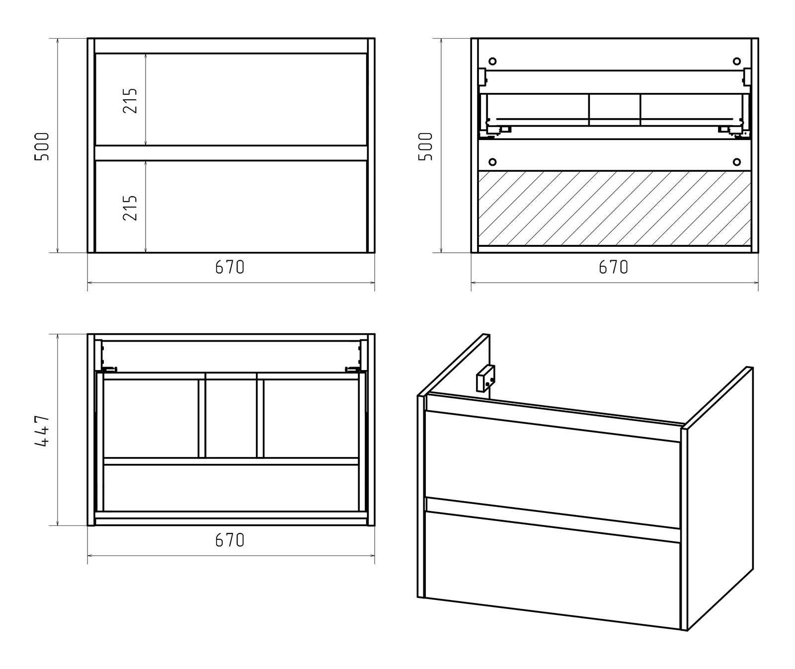 Тумба под раковину Brevita Dallas 70 подвесная 2 ящ. / DAL-01070-074П Дуб Галифакс