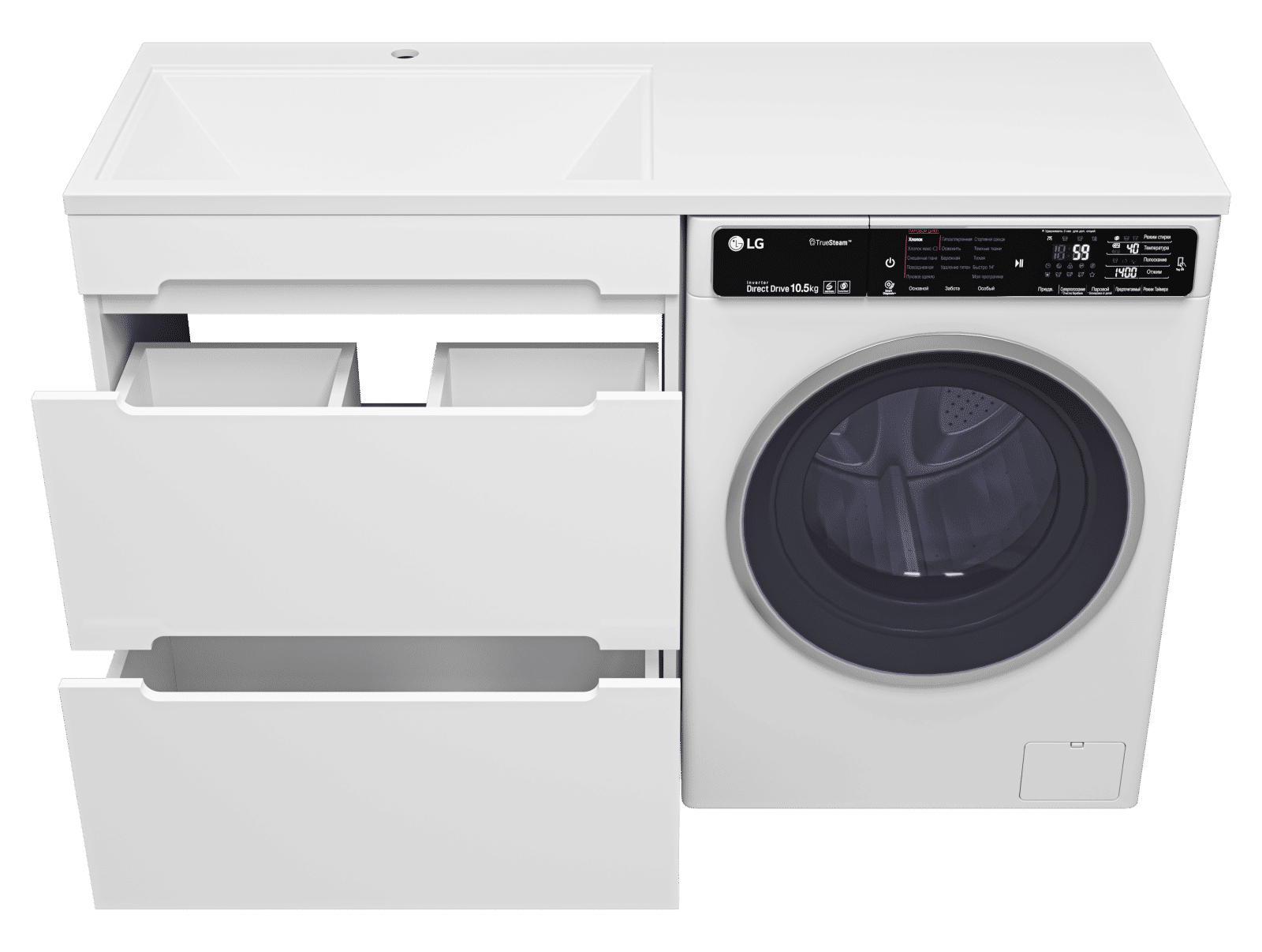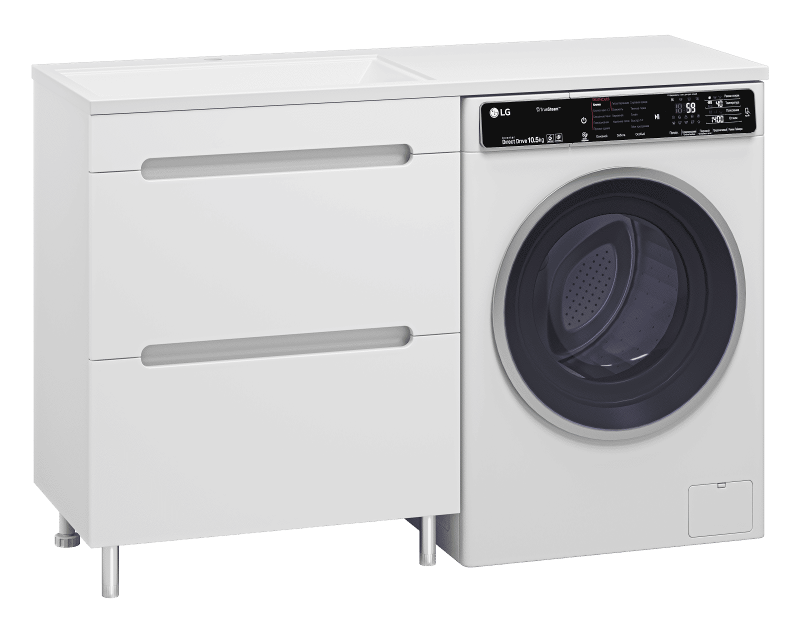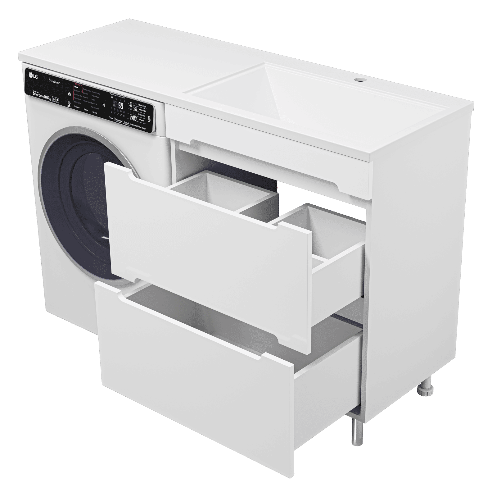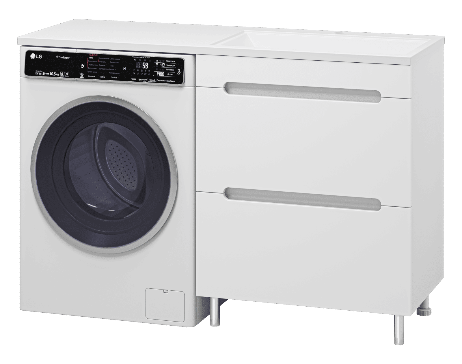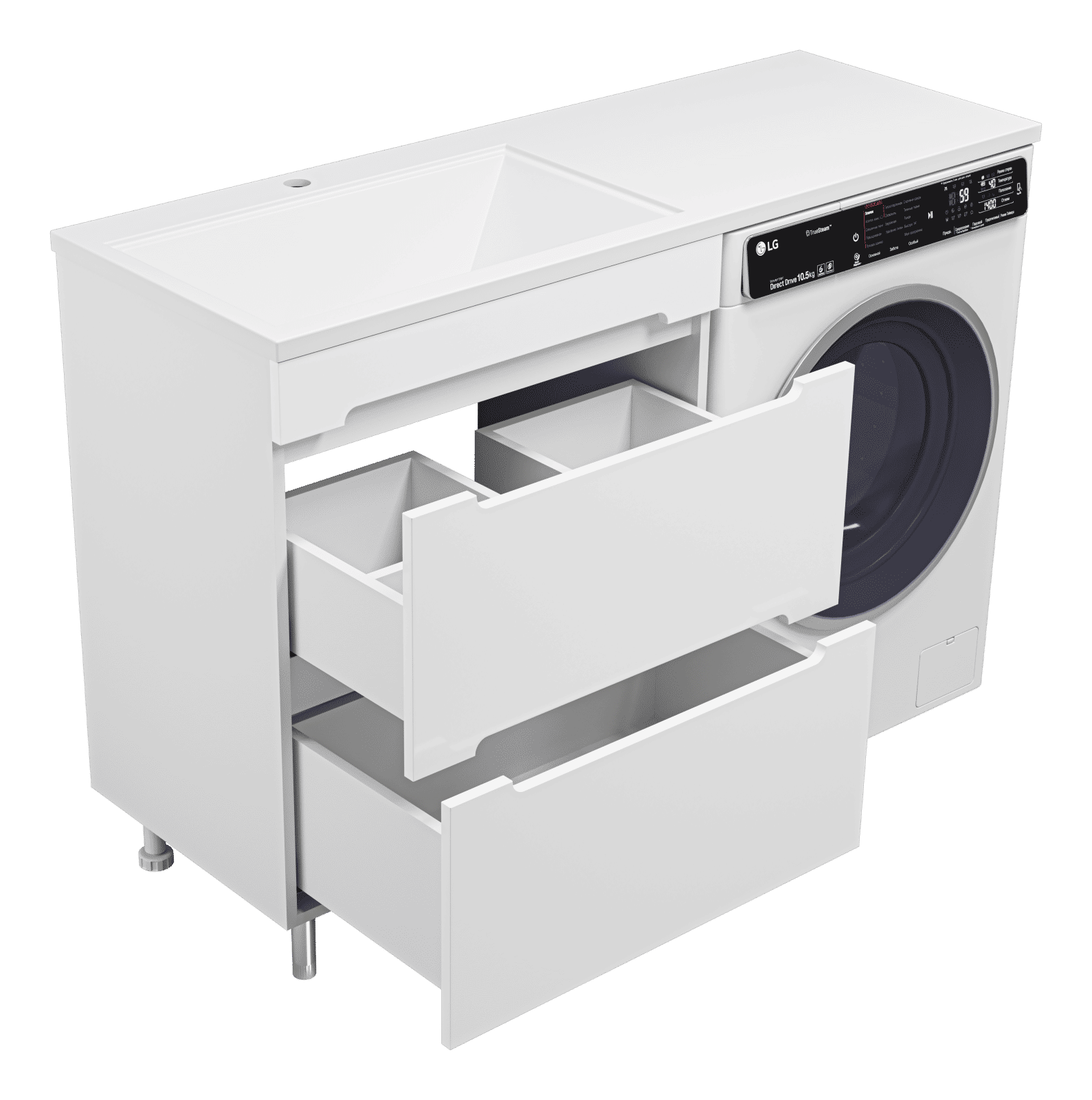 Комплектуются раковинами из литьевого мрамора для установки со стиральной машиной.