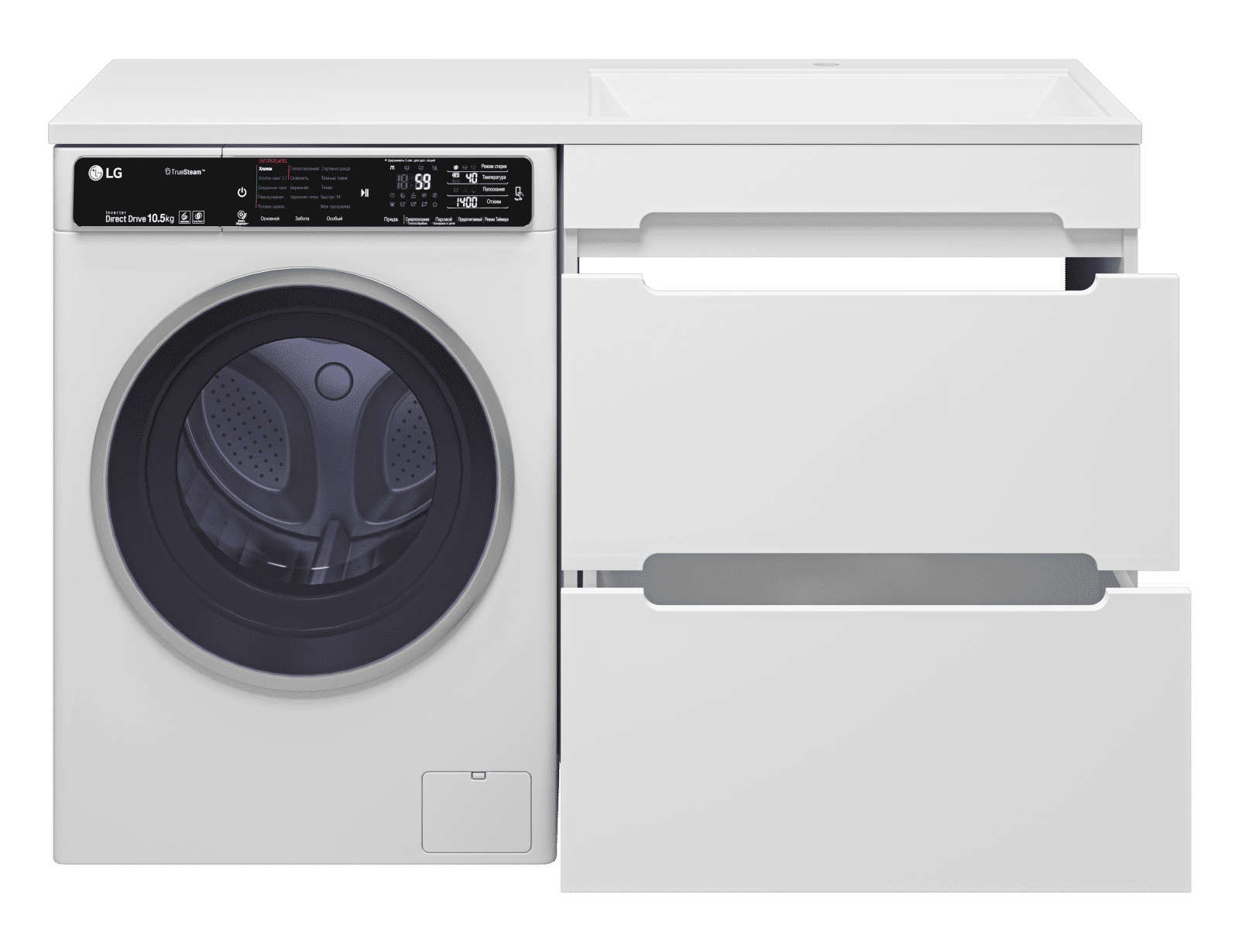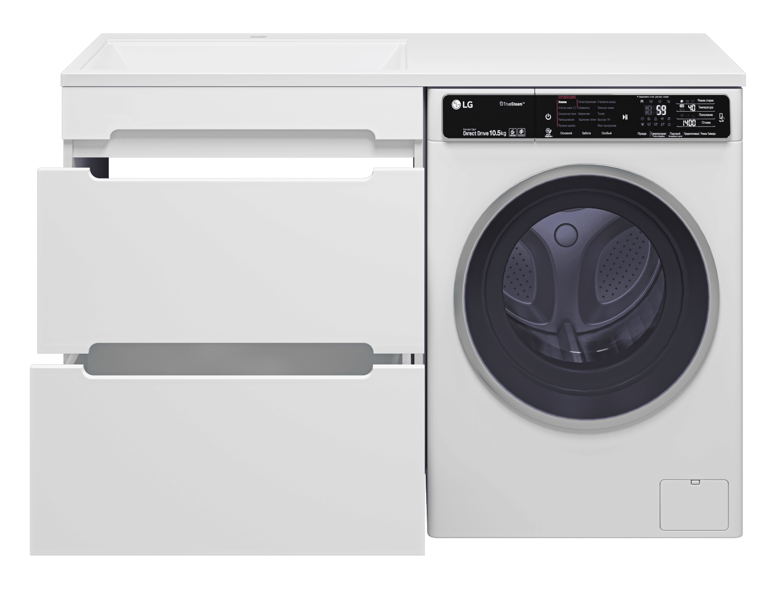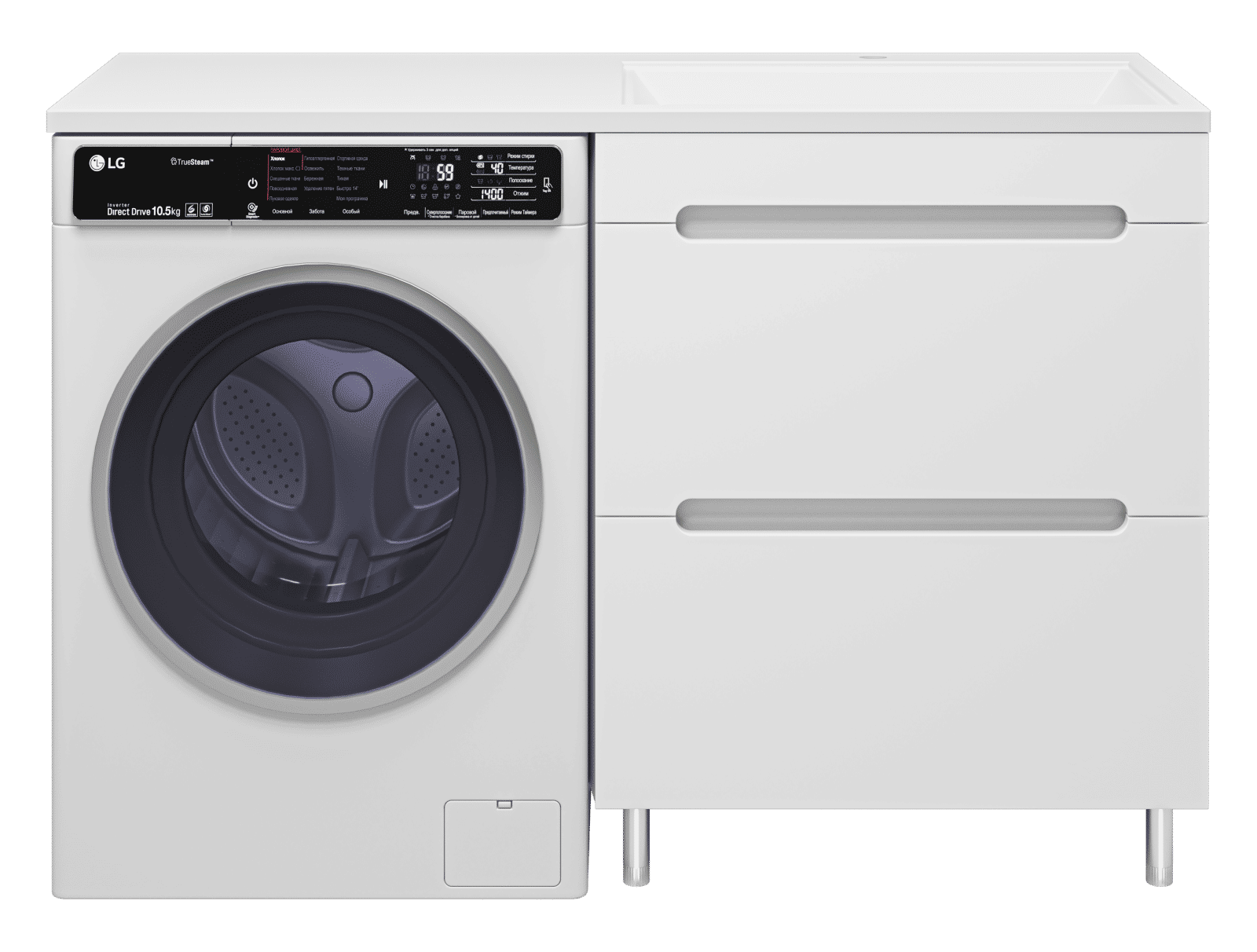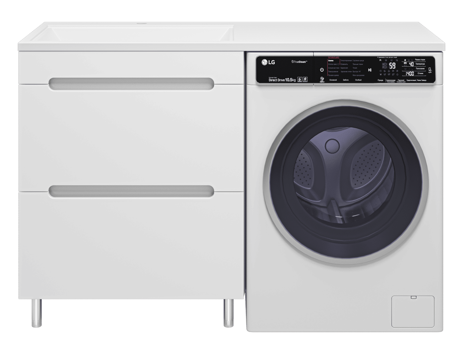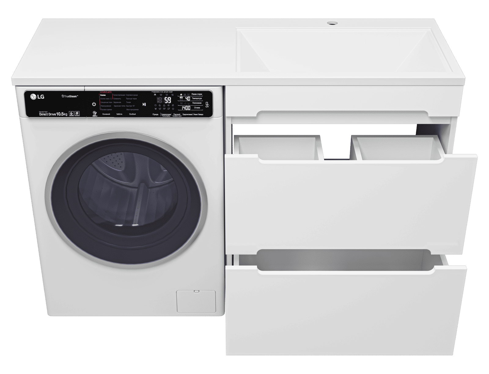 Комплектуются раковинами из литьевого мрамора для установки со стиральной машиной.