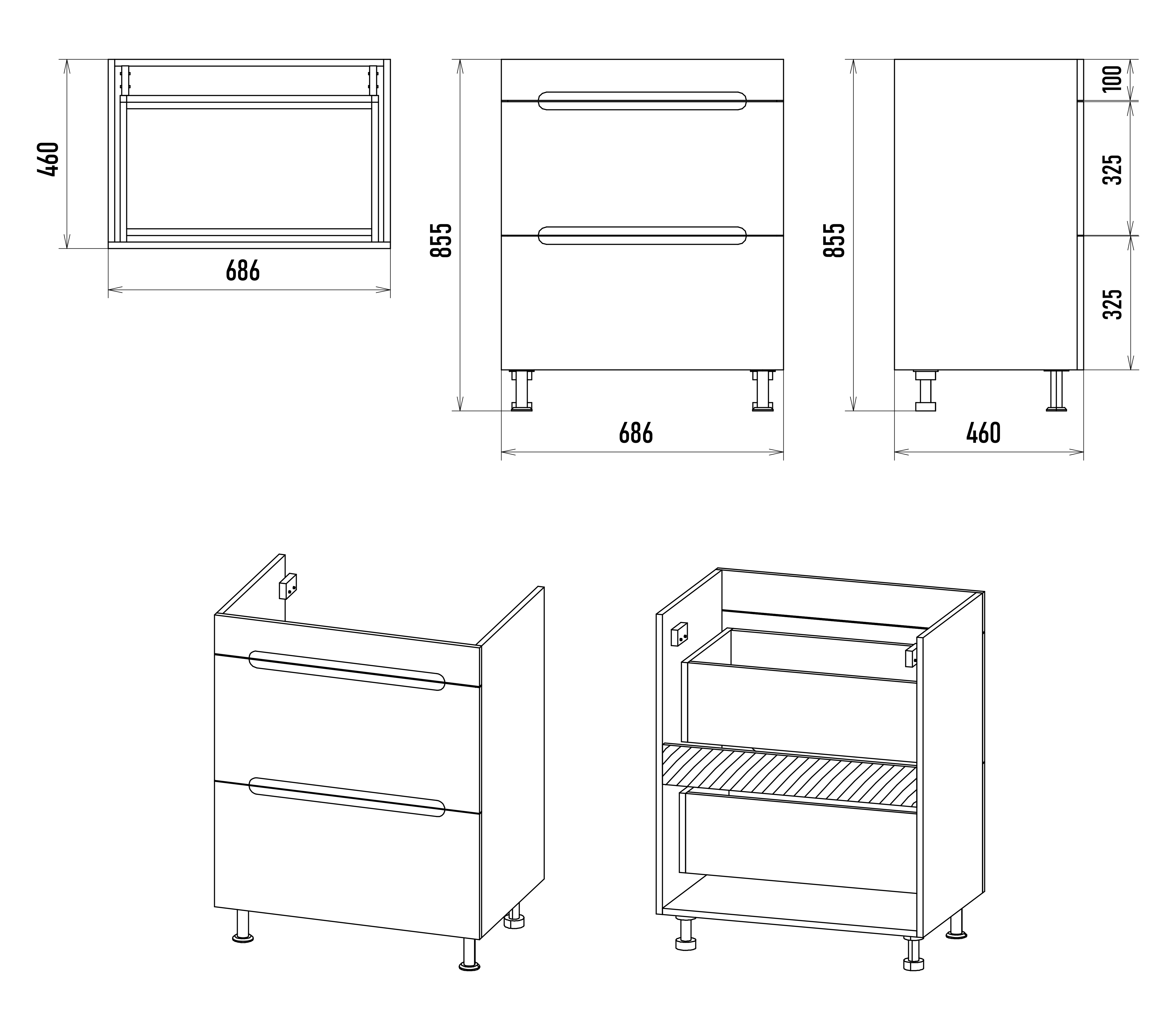 Направляющие ящиков оснащены доводчиками.