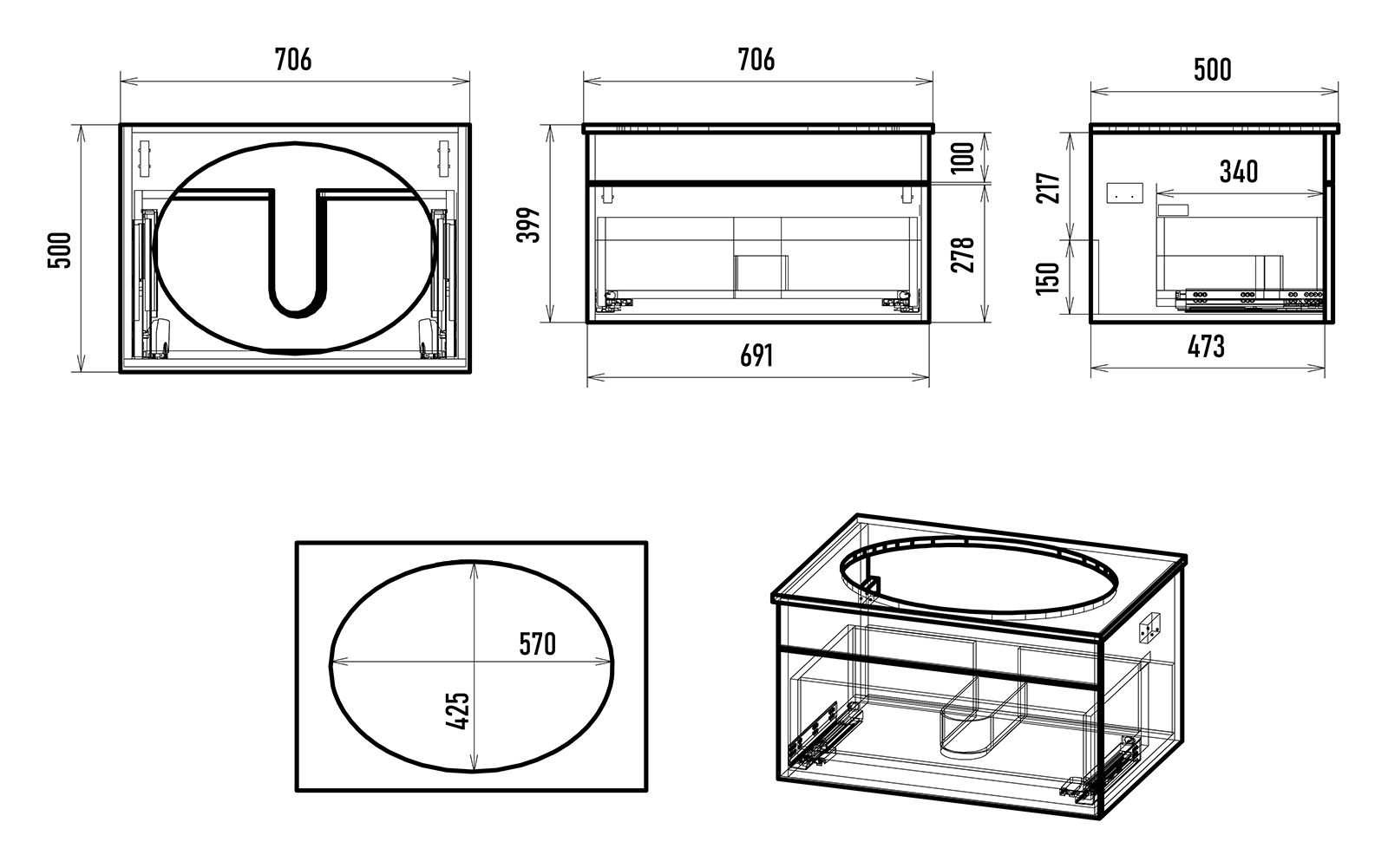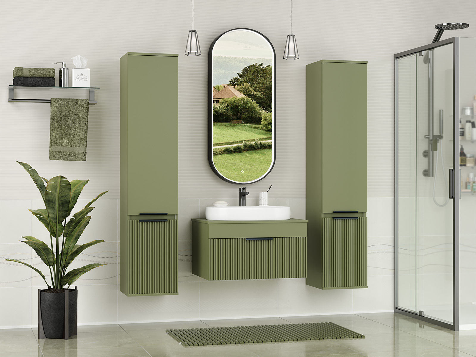 Тумба под раковину Brevita Enfida 70 подвесная 1 ящ. / ENF-06070-0841Я зеленая матовая эмаль