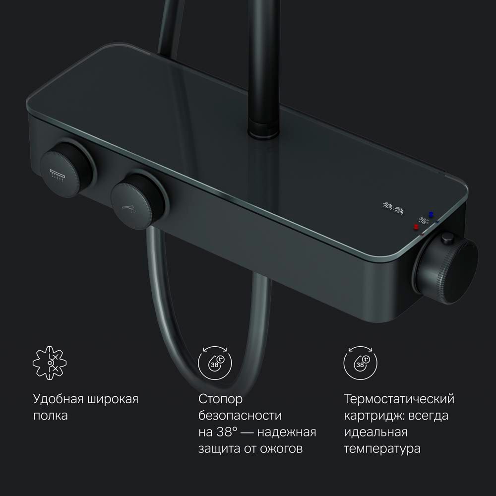 душевая система оснащена термостатическим смесителем для поддержания неизменной температуры воды;
