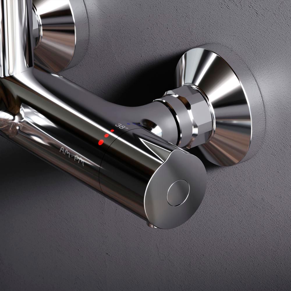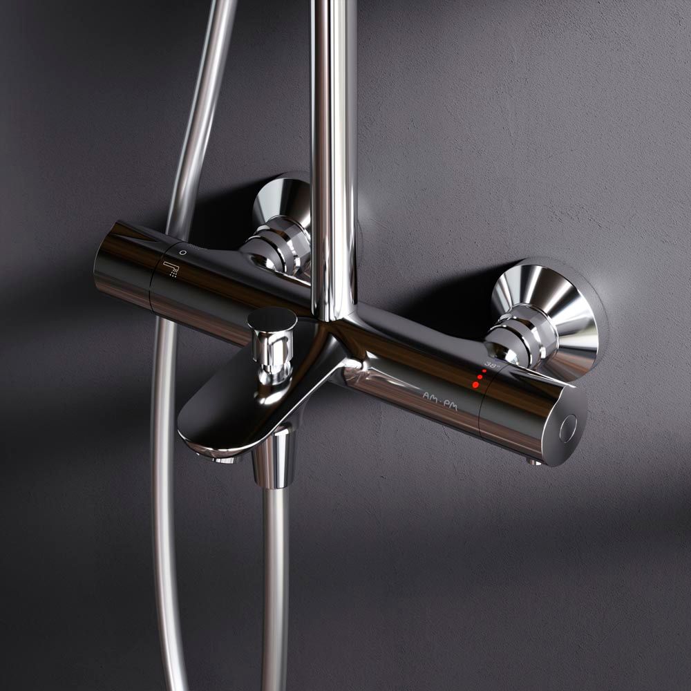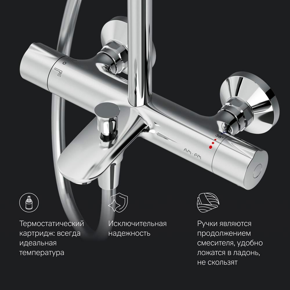 смеситель для ванны и душа с термостатом: термостатический картридж с высокочувствительным термоэлементом, стопором безопасности на 38 градусов, быстрой реакцией на изменения температуры или давления;