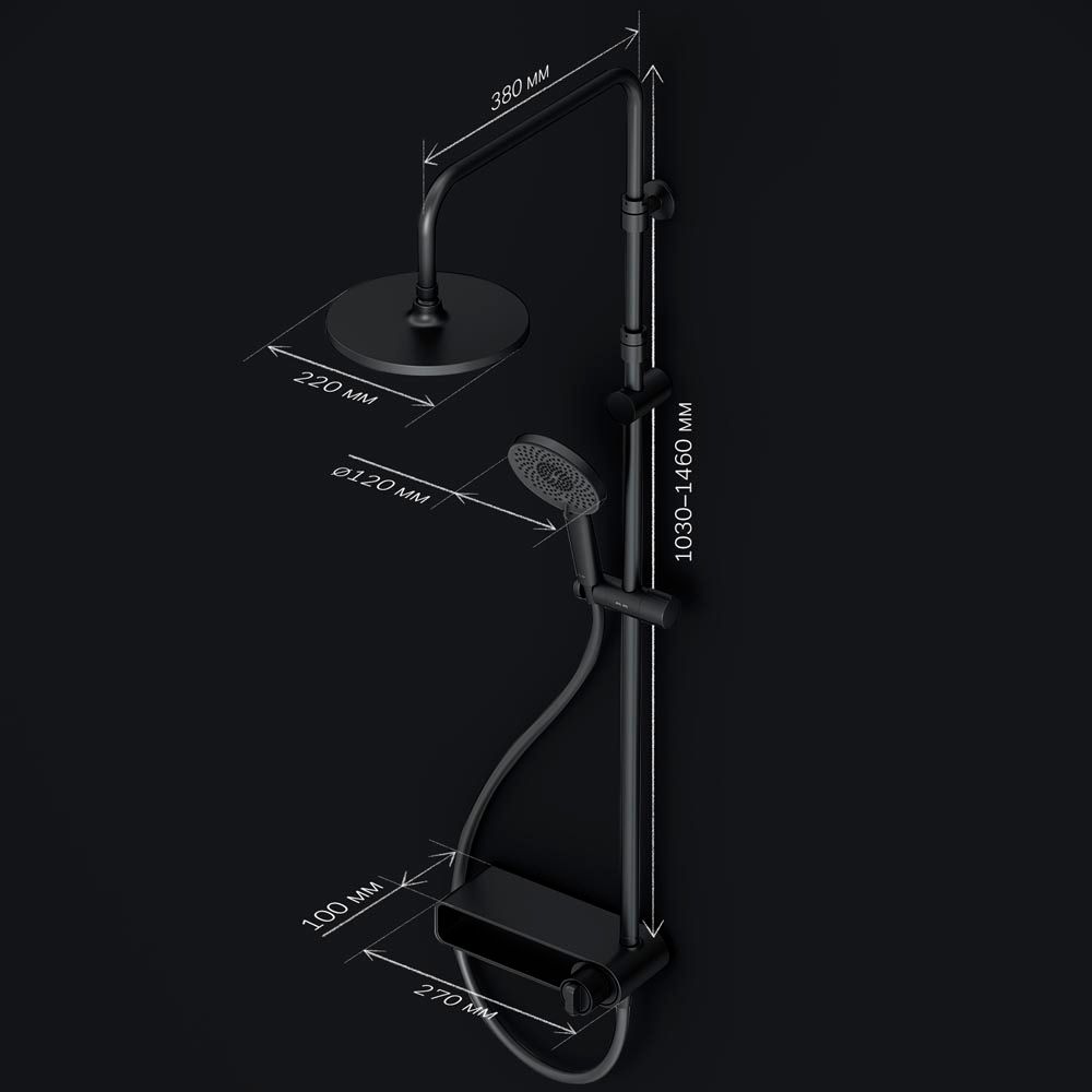 Телескопическая штанга с диапазоном регулировки до 400 мм обеспечивает комфортное принятие душа для людей любого роста, адаптируясь под индивидуальные предпочтения. А благодаря увеличенным размерам тропического душа (220 мм) и ручного (120 мм) вы почувствуете все преимущества этого дизайнерского изделия — мощный поток воды, равномерное распределение и непревзойденный комфорт, который делает каждый день особенным.