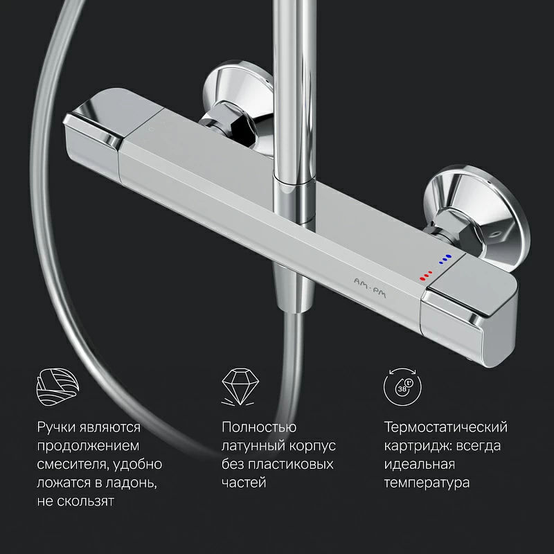 Душевая система от самой функциональной коллекцию Func в линейке бренда AM.PM. Производитель продумал и учел каждую деталь, чтобы сделать процесс использования продуктов максимально простым для всех членов семьи.