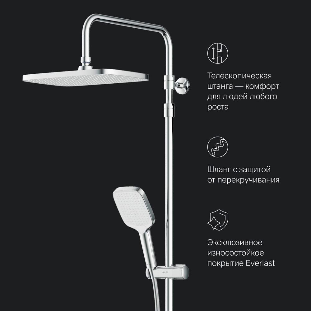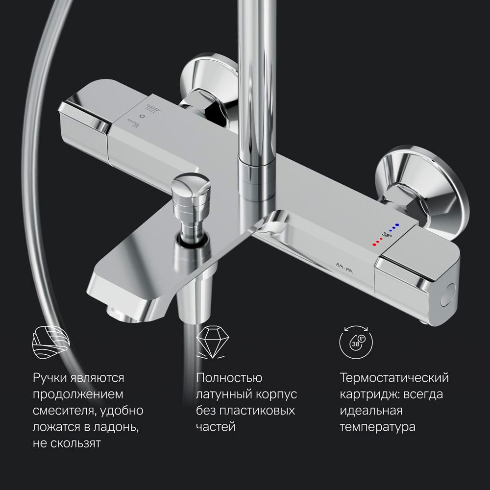 Душевая система от самой функциональной коллекцию Func в линейке бренда AM.PM. Производитель продумал и учел каждую деталь, чтобы сделать процесс использования продуктов максимально простым для всех членов семьи.