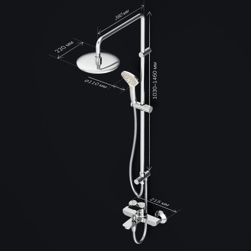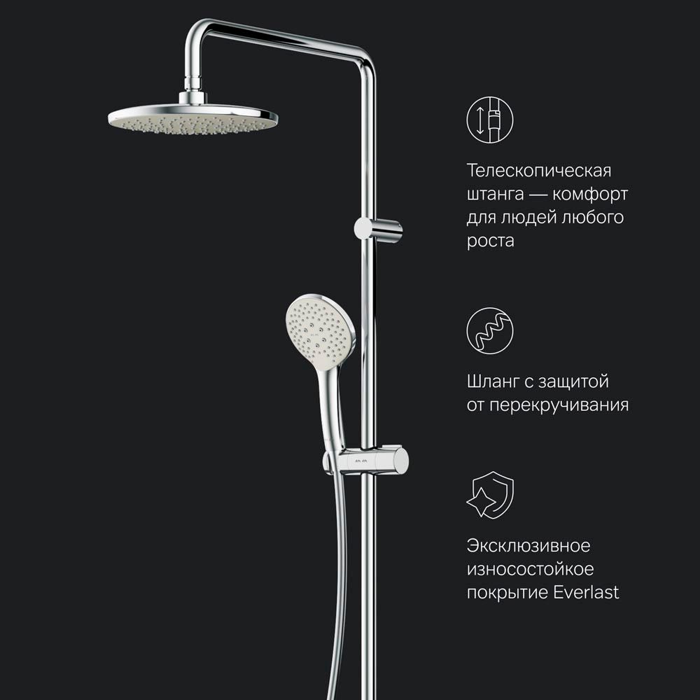 поворотная и телескопическая душевая штанга позволяет индивидуально настроить расположение верхнего душа;