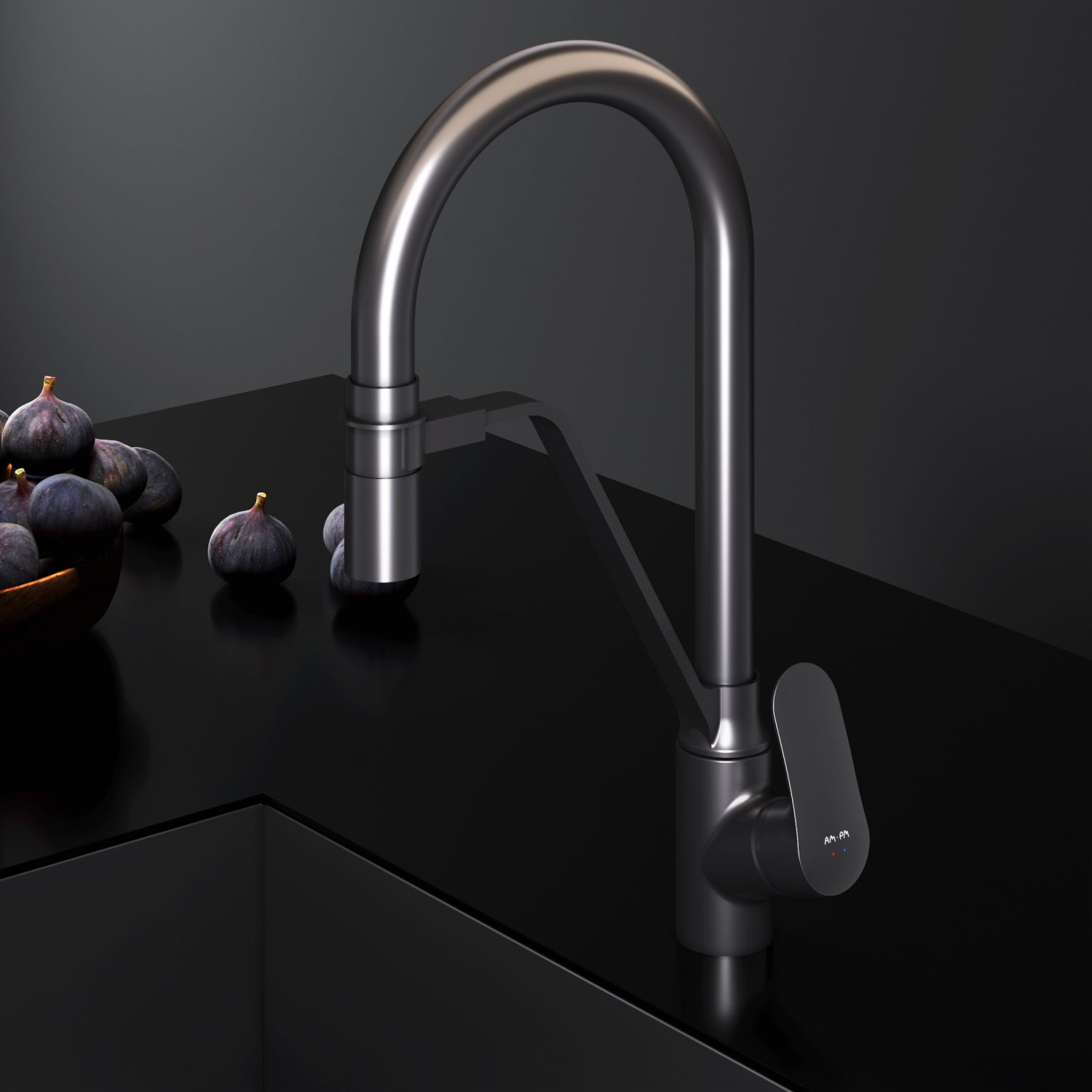 Смеситель для кухонной мойки AM.PM Like F8007822 для питьевой воды и гибким изливом, черный мат.
