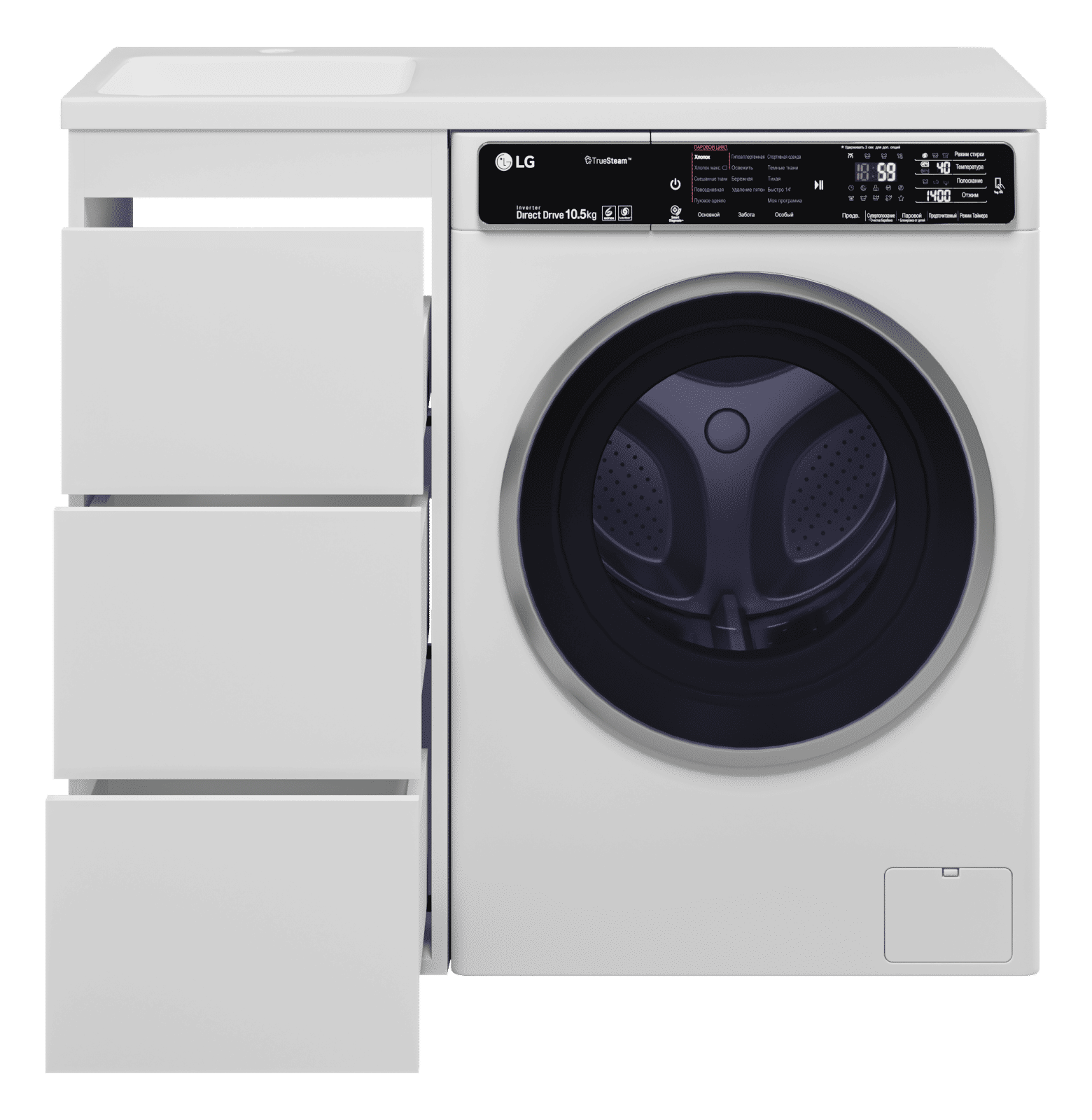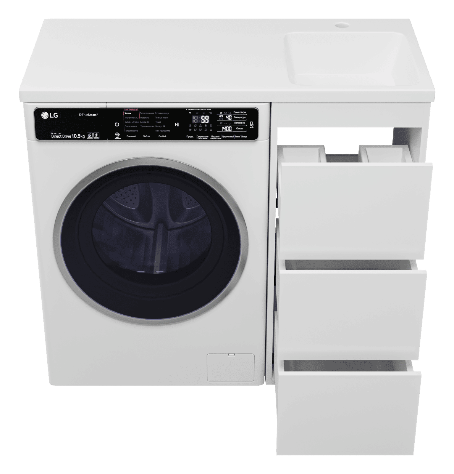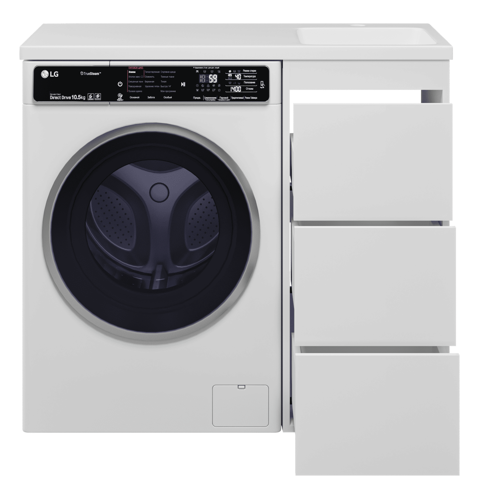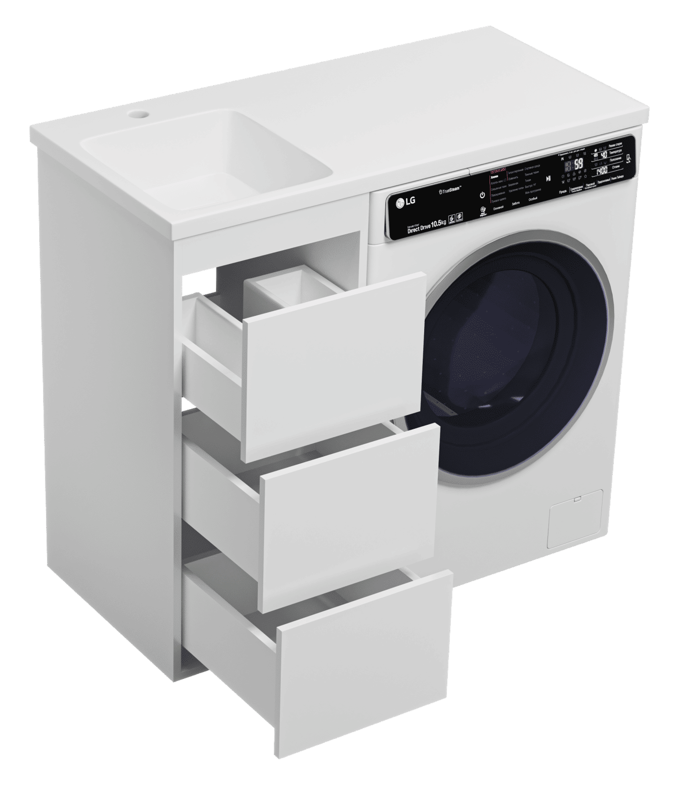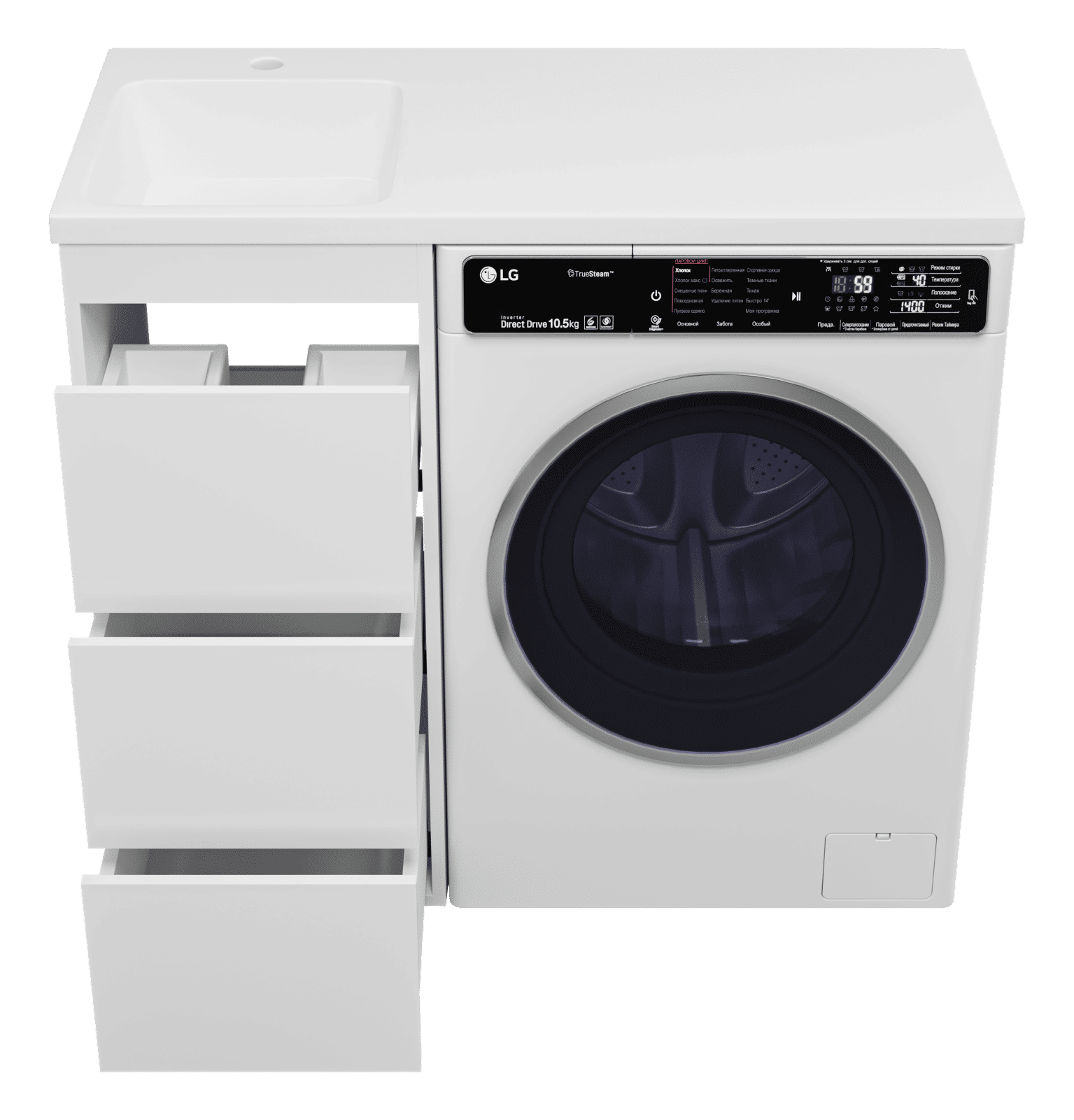 Тумба под раковину Brevita Grafit 40 напольная 3 ящ. под стиральную машину / GRA-01040-023Я белая