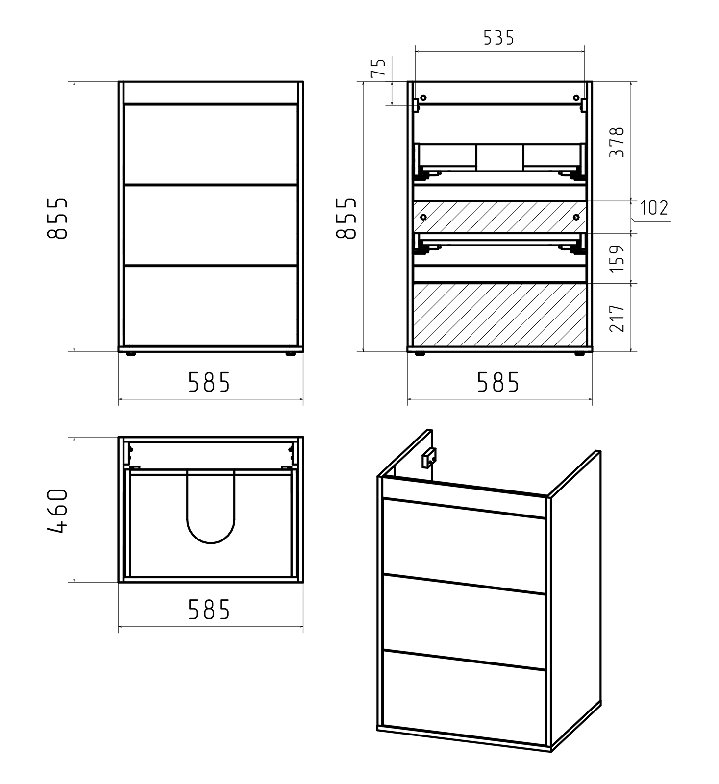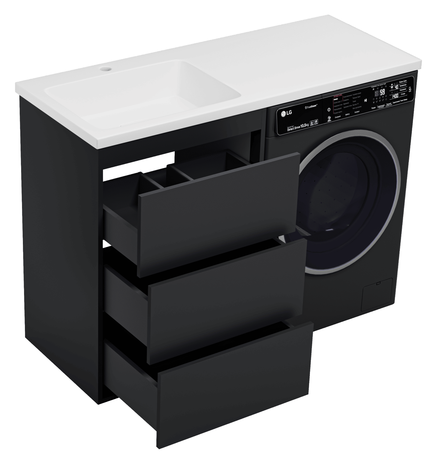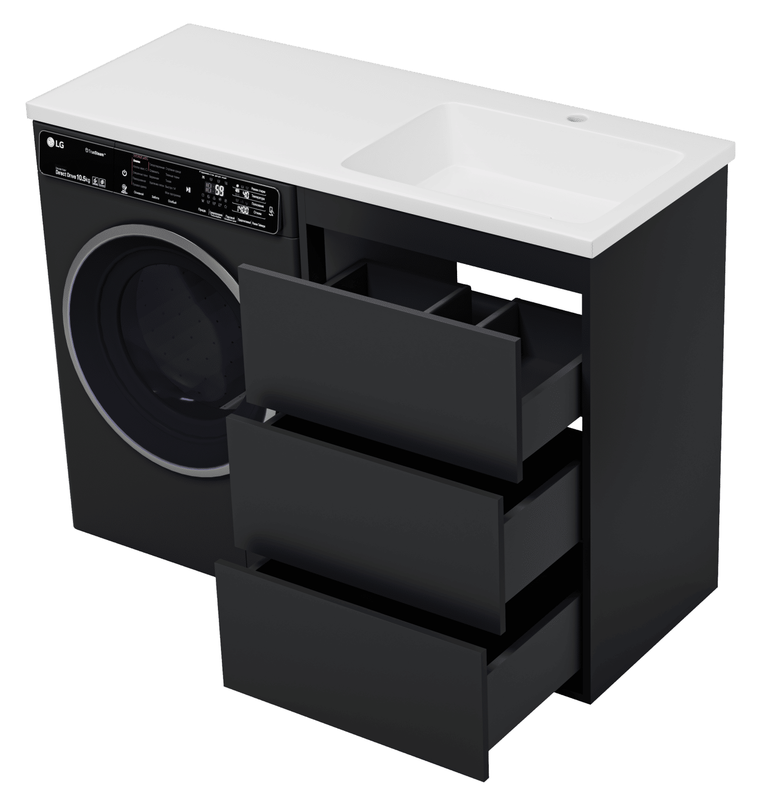 Тумба под раковину Brevita Grafit 60 напольная 3 ящ. под стиральную машину / GRA-01060-013Я графит