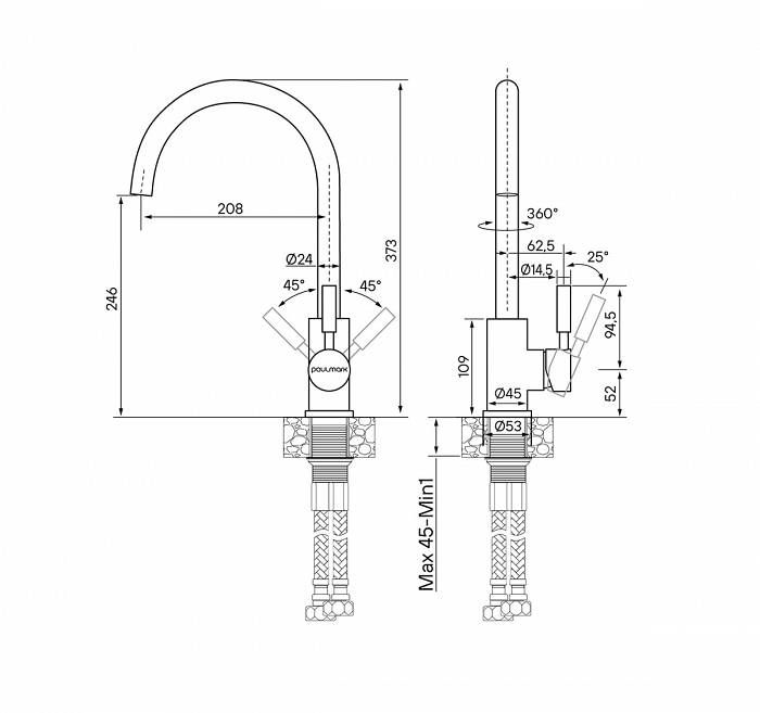 Смеситель для кухни Paulmark Holstein Ho212063-308 черный