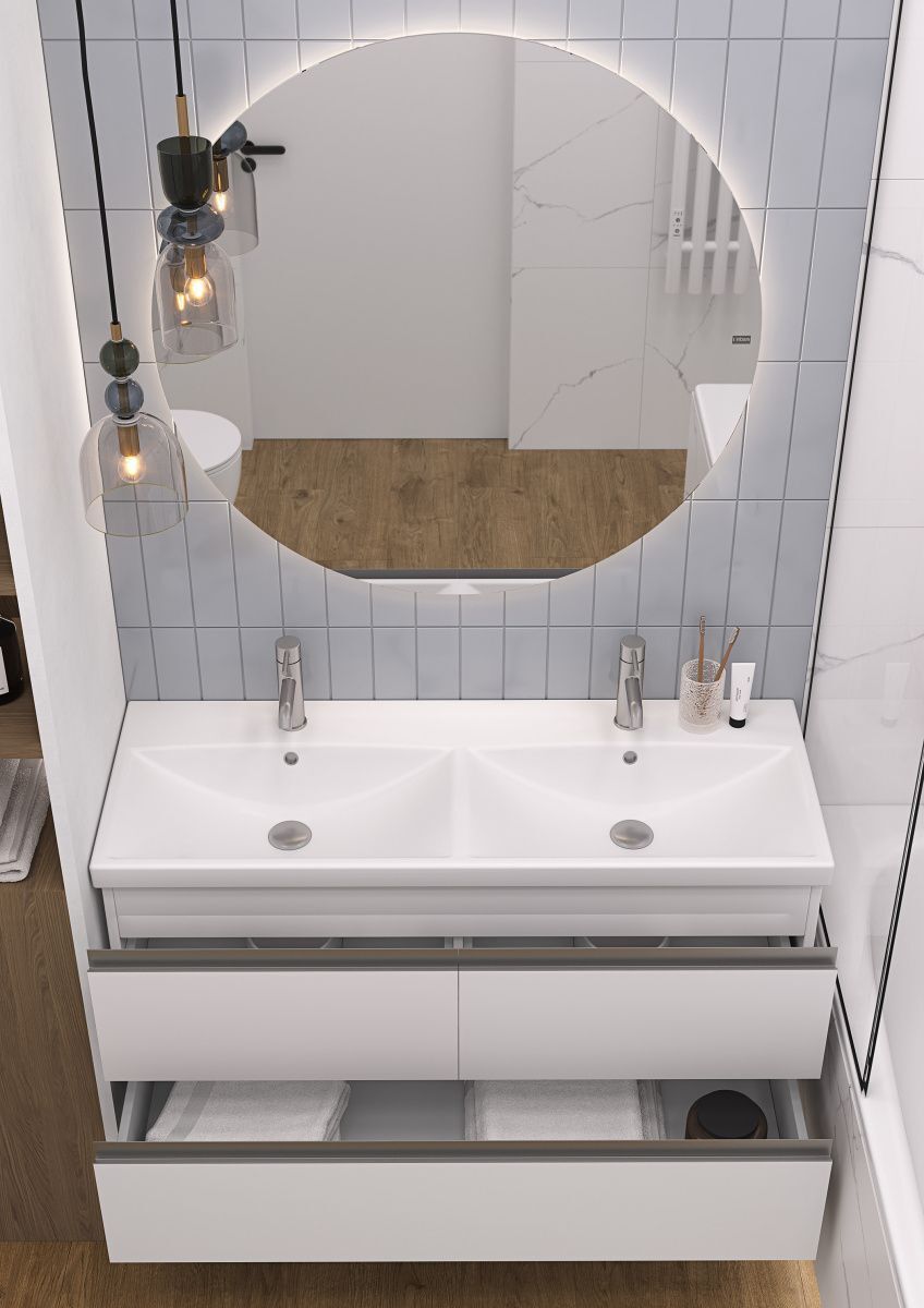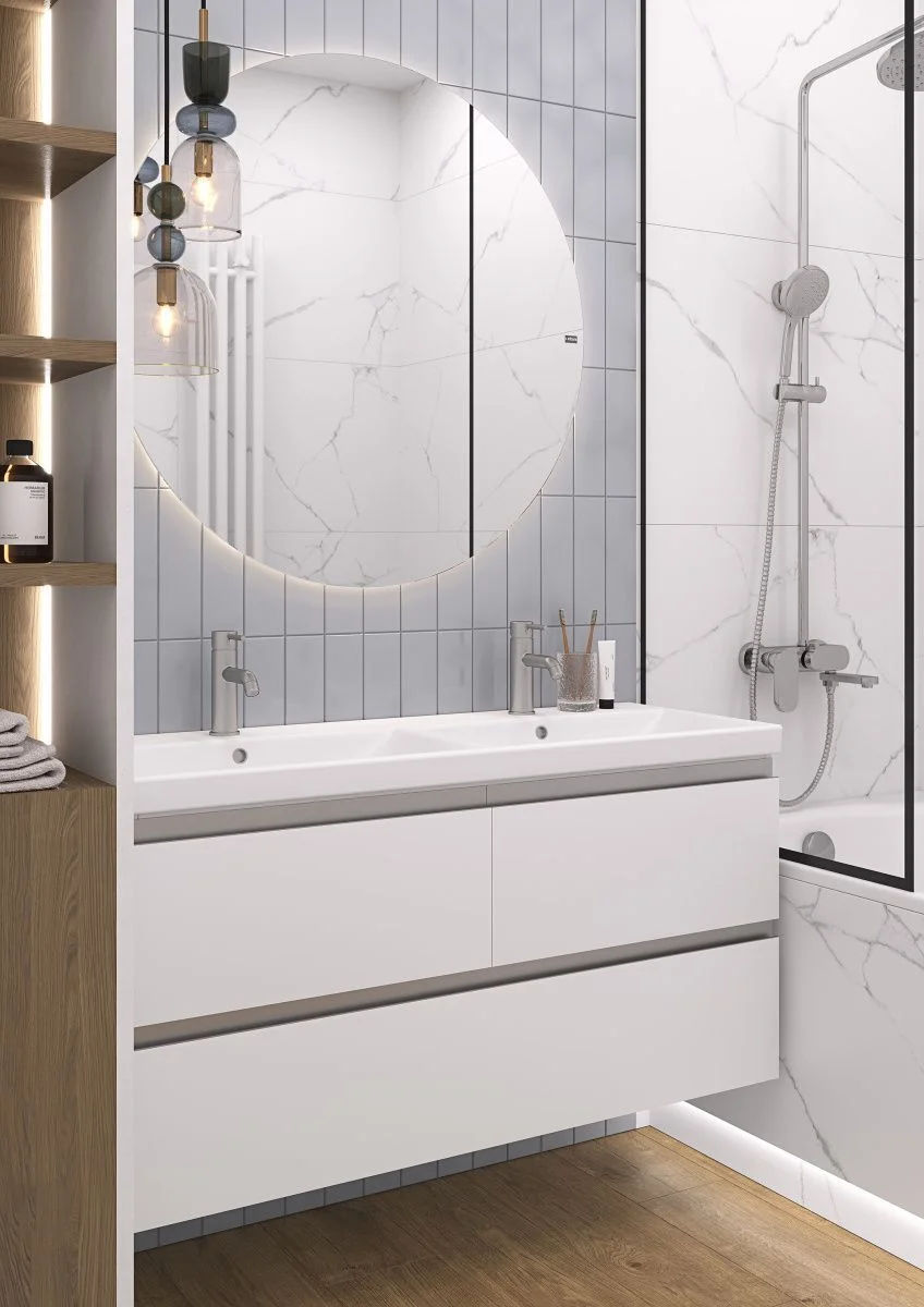 Особенно впечатляет ее гармоничное сочетание с умывальником с двойной чашей CeraStyle Elite 120 DUO, где эти элементы образуют идеальный дуэт, создавая многофункциональный центр ванной. Монтаж не требует сложностей, делая тумбу подходящей для разнообразных интерьеров — от компактных квартир до просторных резиденций.