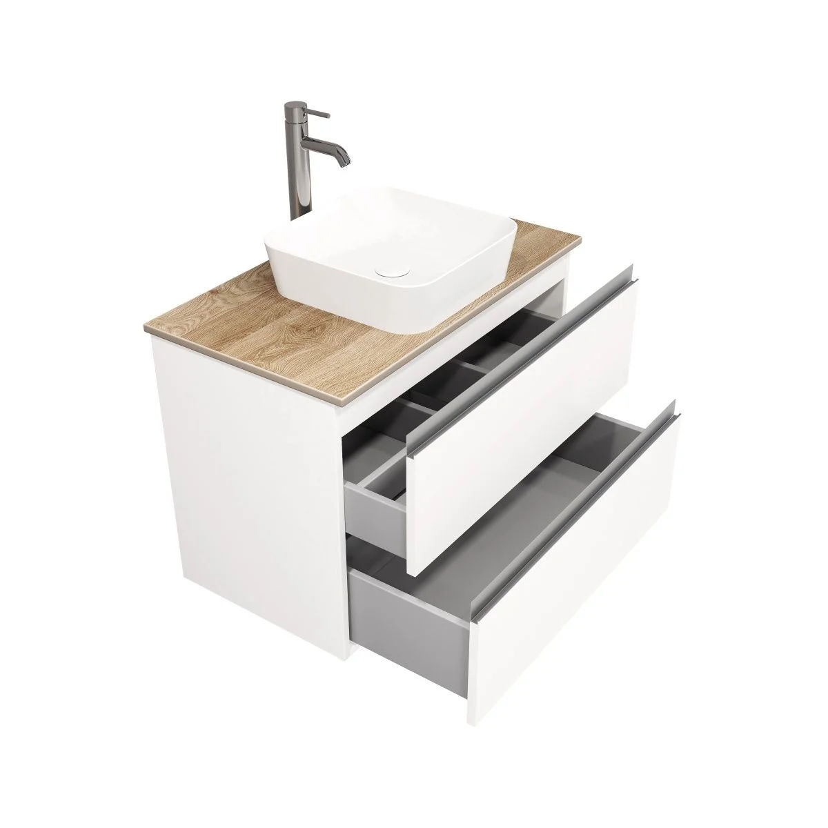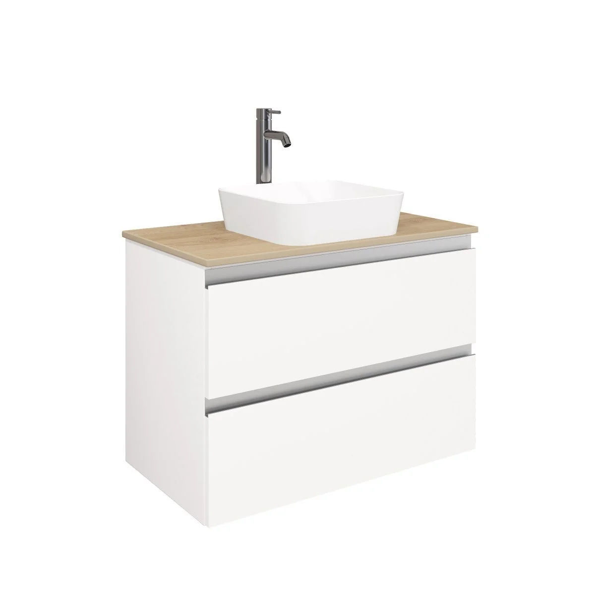 Тумба под раковину Laparet Electra 80 со столешницей подвесная / LE-WCABtop-80-101-333 ультра белый глянец/дуб Каселла