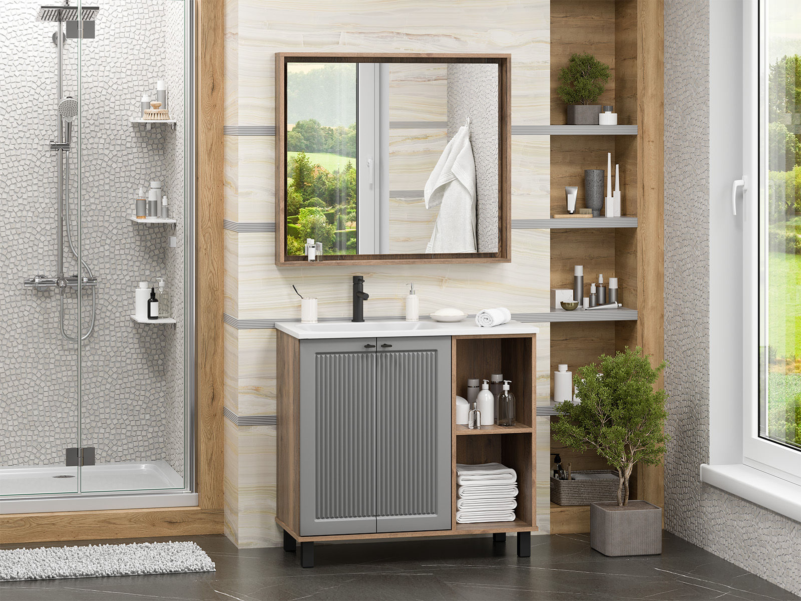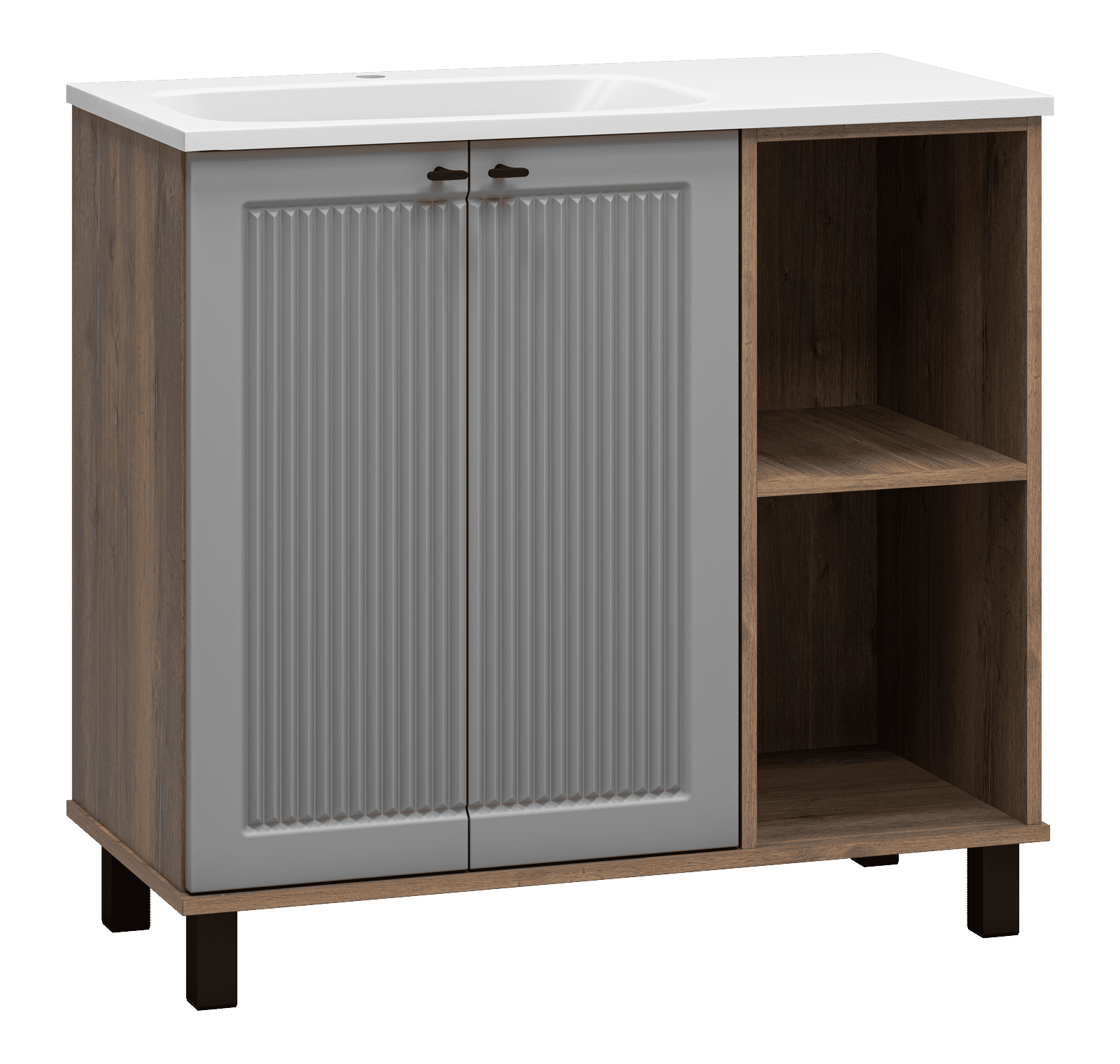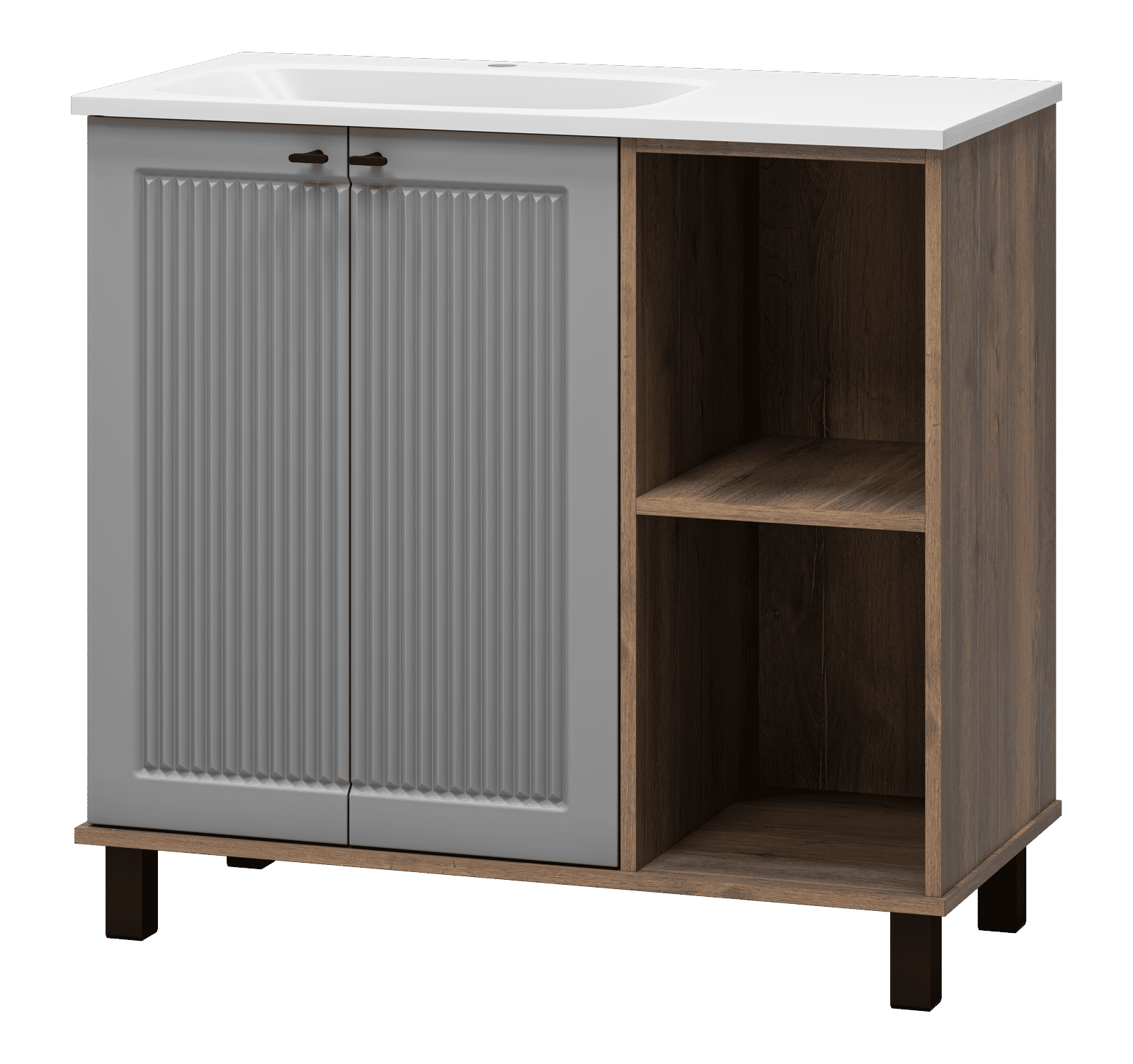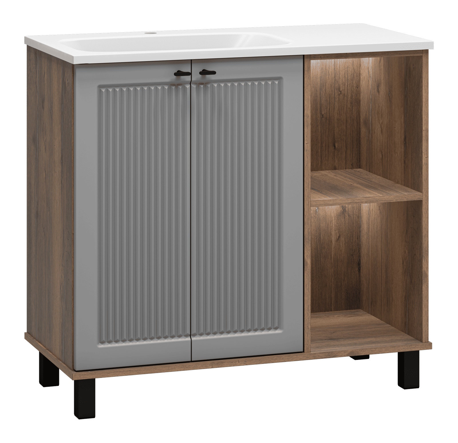 Тумба под раковину Brevita Lumus 90 напольная 2 дв., с нишей левая / LUM-06070-0842ЯL дуб галифакс олово / серая матовая эмаль