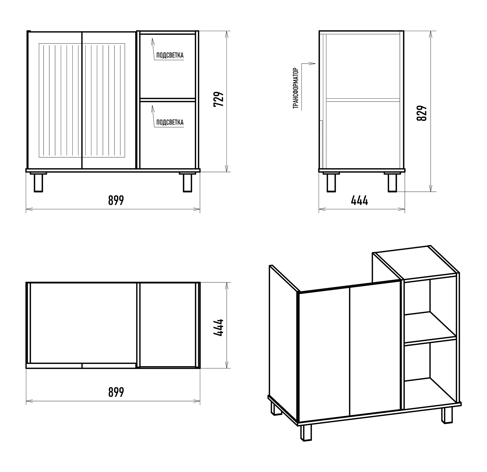 | Система хранения | Дверки, Открытые полки |