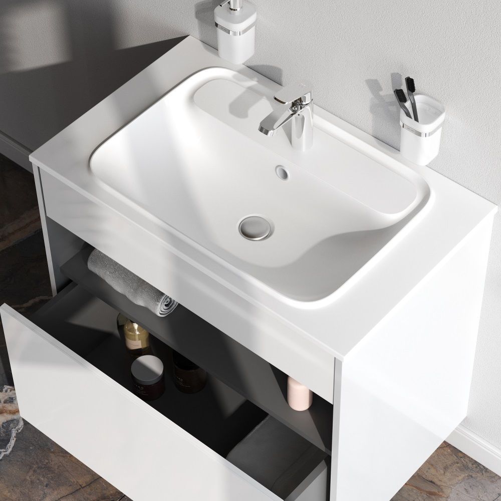 Тумба под раковину AM.PM Func 80 см 1 ящик (pull-out) / M8FFUX0801WG белый глянец