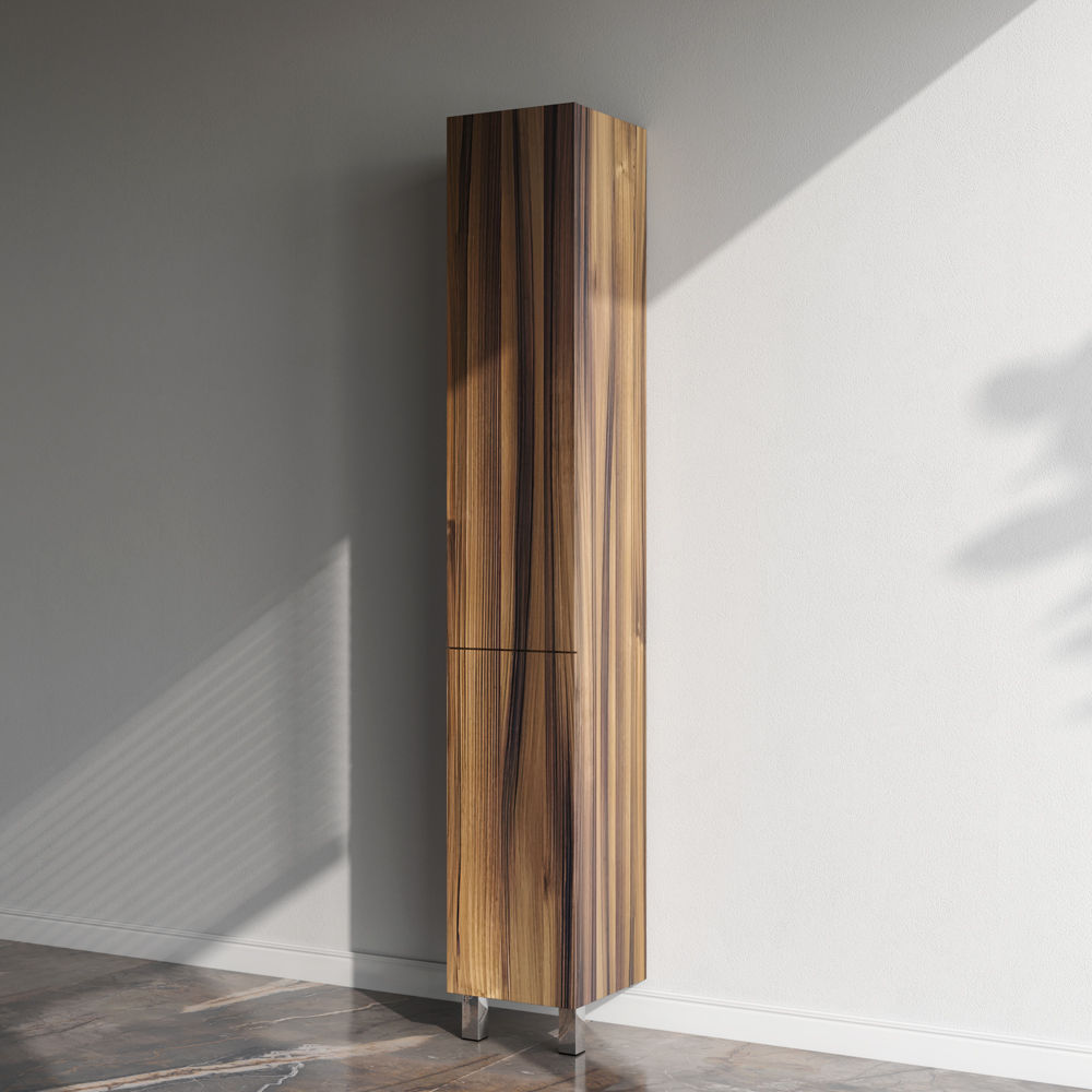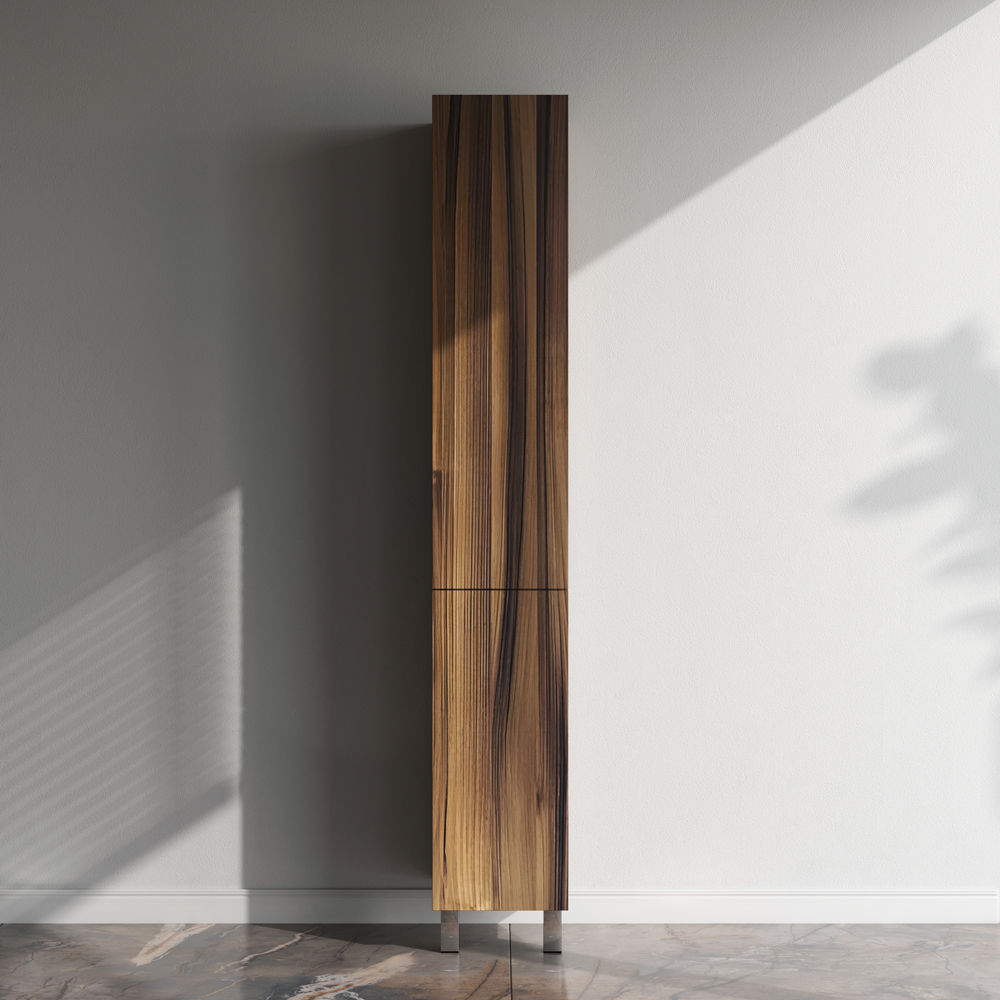 Напольный шкаф-пенал от бренда AM.PM коллекции Gem представлен в трендовом дизайне мебели для ванной комнаты.
