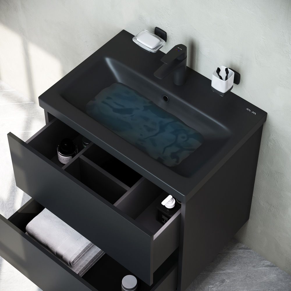 Тумба под раковину AM.PM GEM 60 см подвесная 2 ящика (push-to-open) / M90FHX06022BM черный матовый