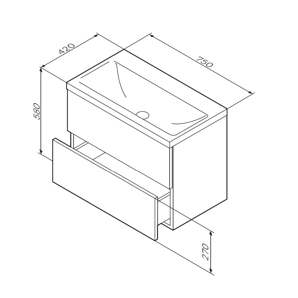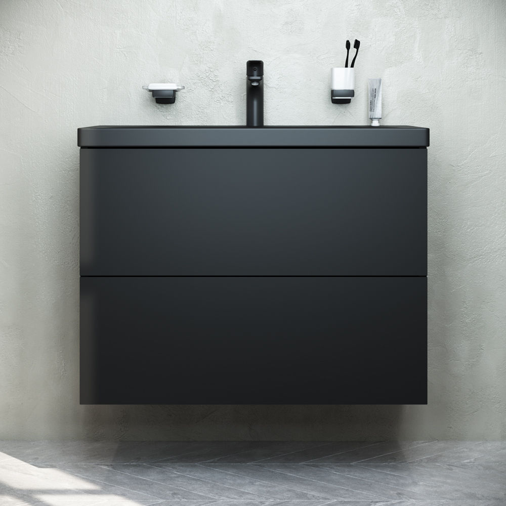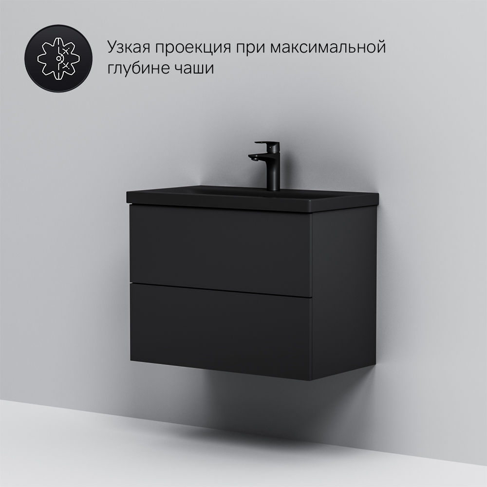 Тумба под раковину AM.PM GEM 75 см подвесная 2 ящика (push-to-open) / M90FHX07522BM черный матовый
