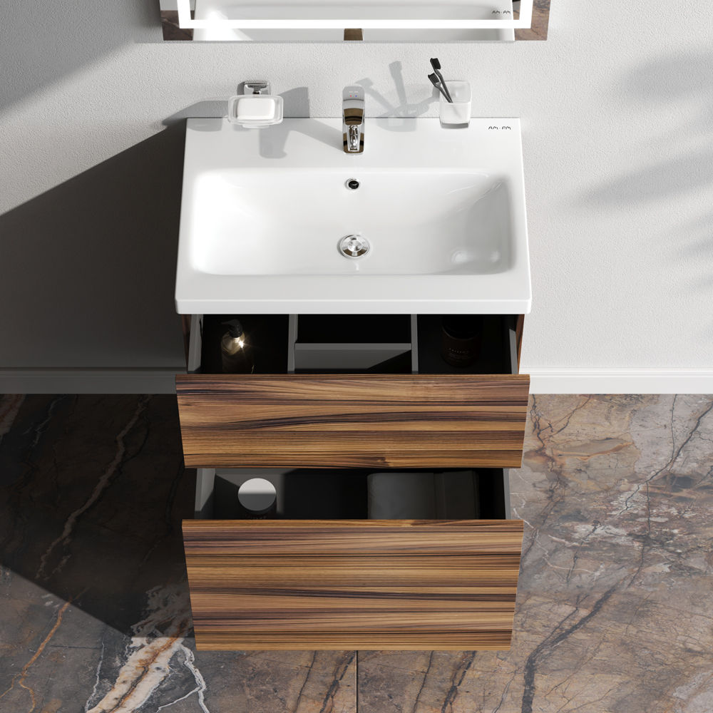 Тумба под раковину AM.PM GEM 60 см напольная 2 ящика (push-to-open) / M90FSX0602HF орех