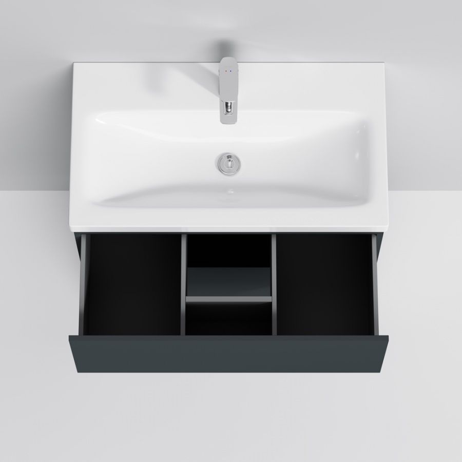 Тумба под раковину AM.PM GEM 75 см напольная 2 ящика (push-to-open) / M90FSX07522GM32 графит матовый