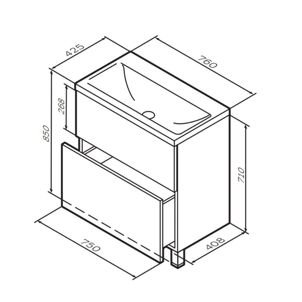 Тумба под раковину AM.PM GEM 75 см напольная 2 ящика (push-to-open) / M90FSX0752HF орех