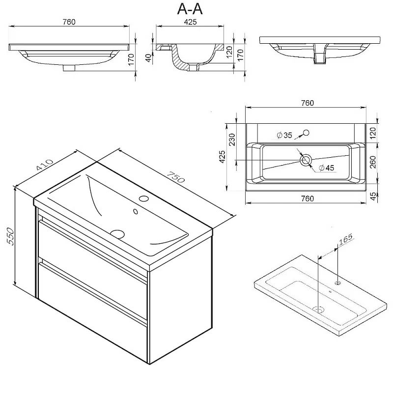 Фасады в белом глянце, дополненные графитовой вставкой, сочетаются с внутренним покрытием ящиков в антраците, где противоскользящая поверхность предотвращает скольжение вещей. Мягкое открытие и закрытие обеспечивают направляющие скрытого монтажа с системой soft close, добавляя плавности и тишины. Фасад и корпус из влагостойкого ЛДСП с ламинатным покрытием гарантируют долговечность в условиях влажности, а оптимизированные ящики и скрытые коммуникации внутри тумбы делают хранение вещей интуитивным и незаметным.