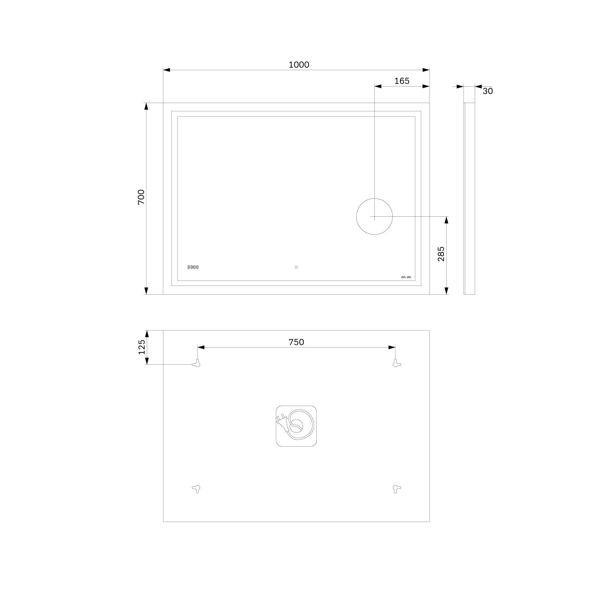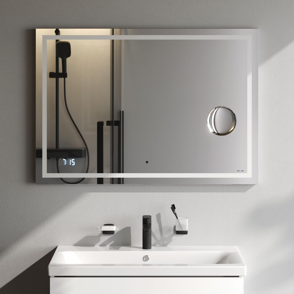 Зеркало AM.PM Gem 100×70 см с контурной Led-подсветкой, часами и косметическим зеркалом / M91AMOX1003WG