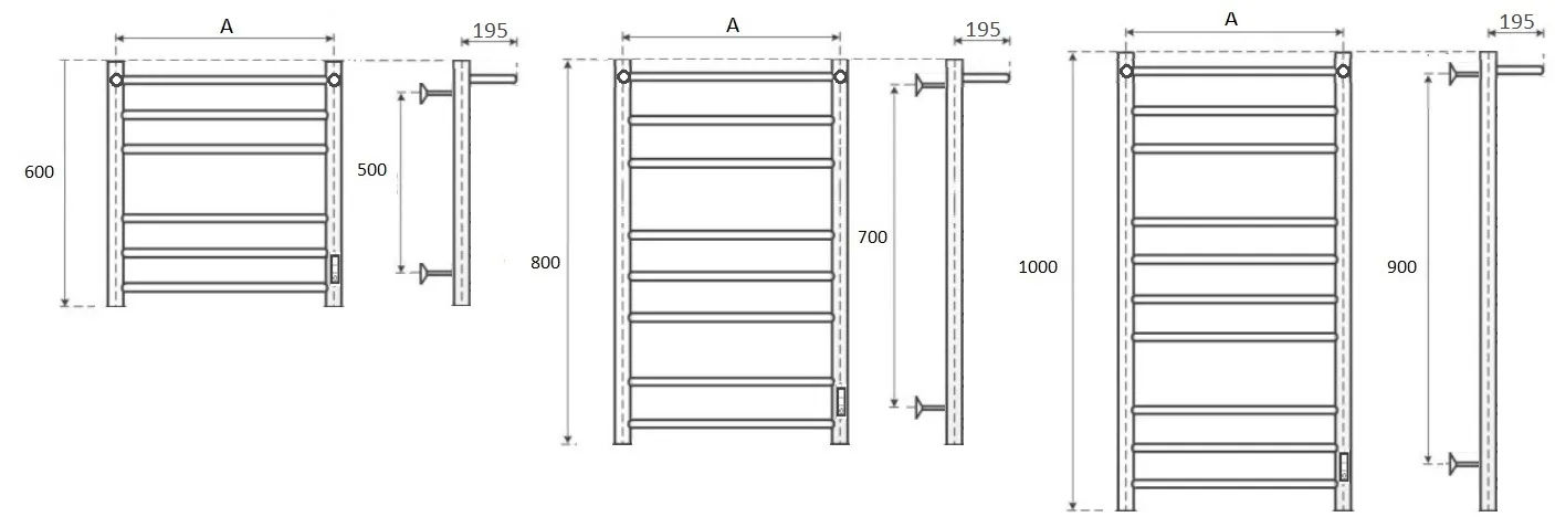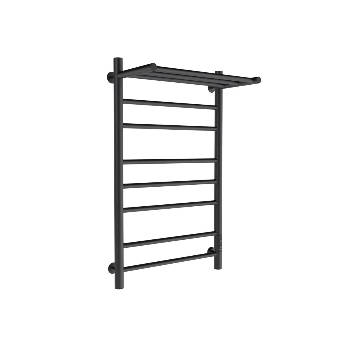 Электрический полотенцесушитель Маргроид Ferrum Вид 10 с полкой изготовлен из конструкционной стали. Устанавливается на 4 опоры. Внутри полотенцесушителя протянут нагревательный шнур. С правой стороны установлен диммер со световой индикацией, позволяющий выставить температуру и таймер нагрева.