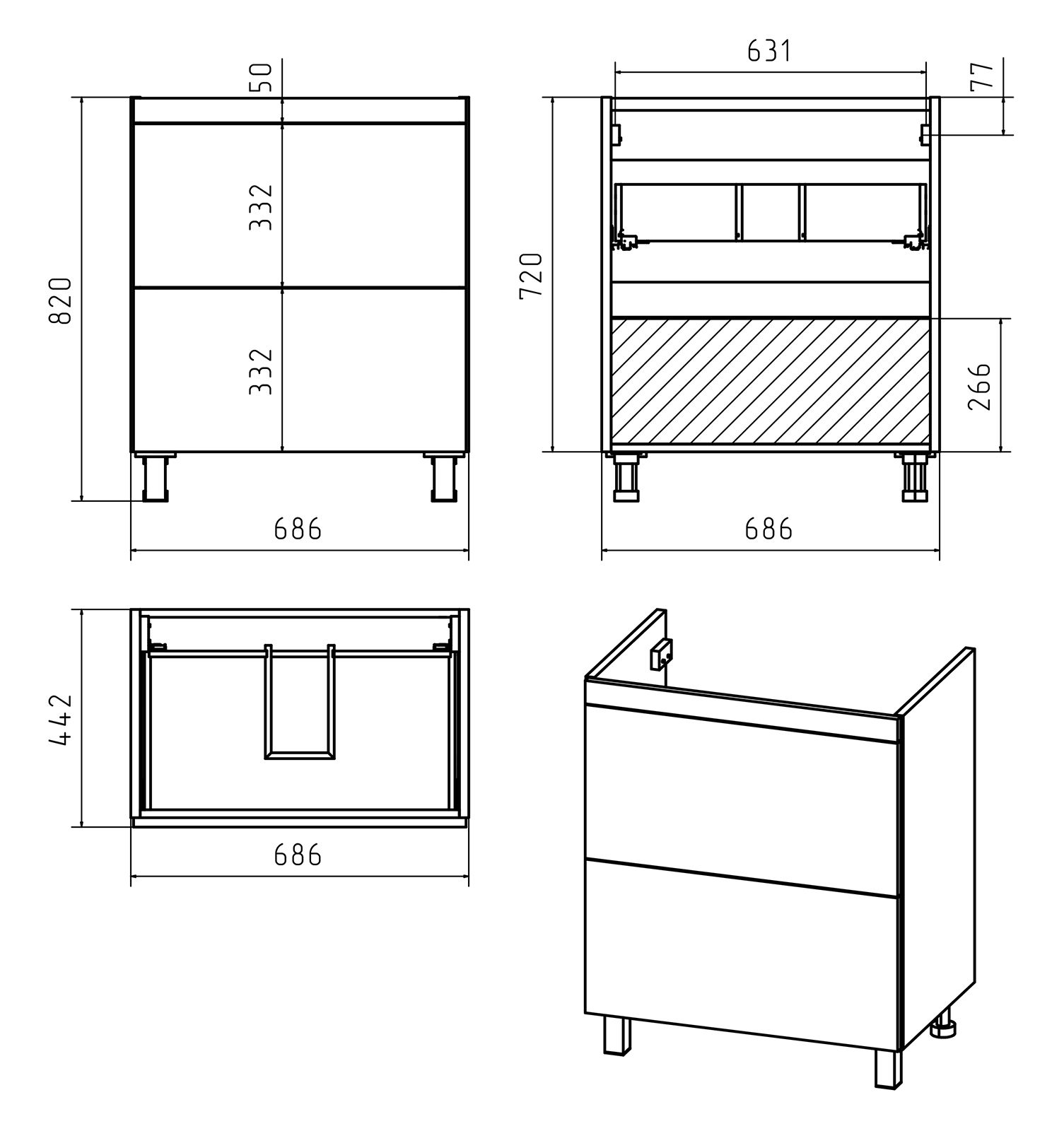 Тумба под раковину Misty Атлантик 70 напольная с 2 ящ. П-Атл-01070-0112Я