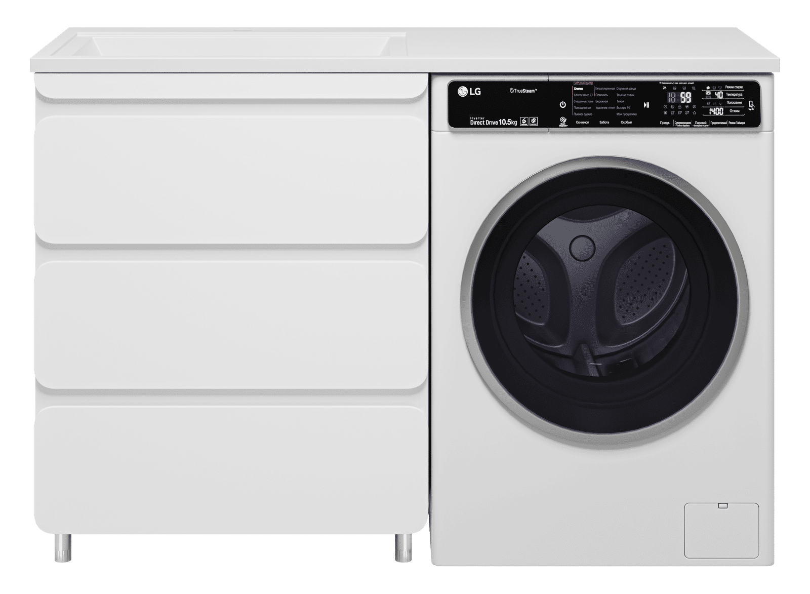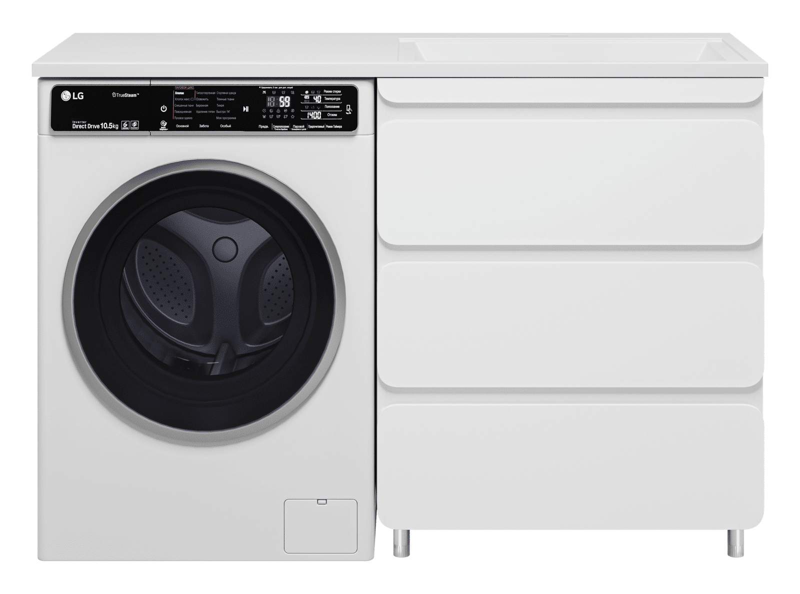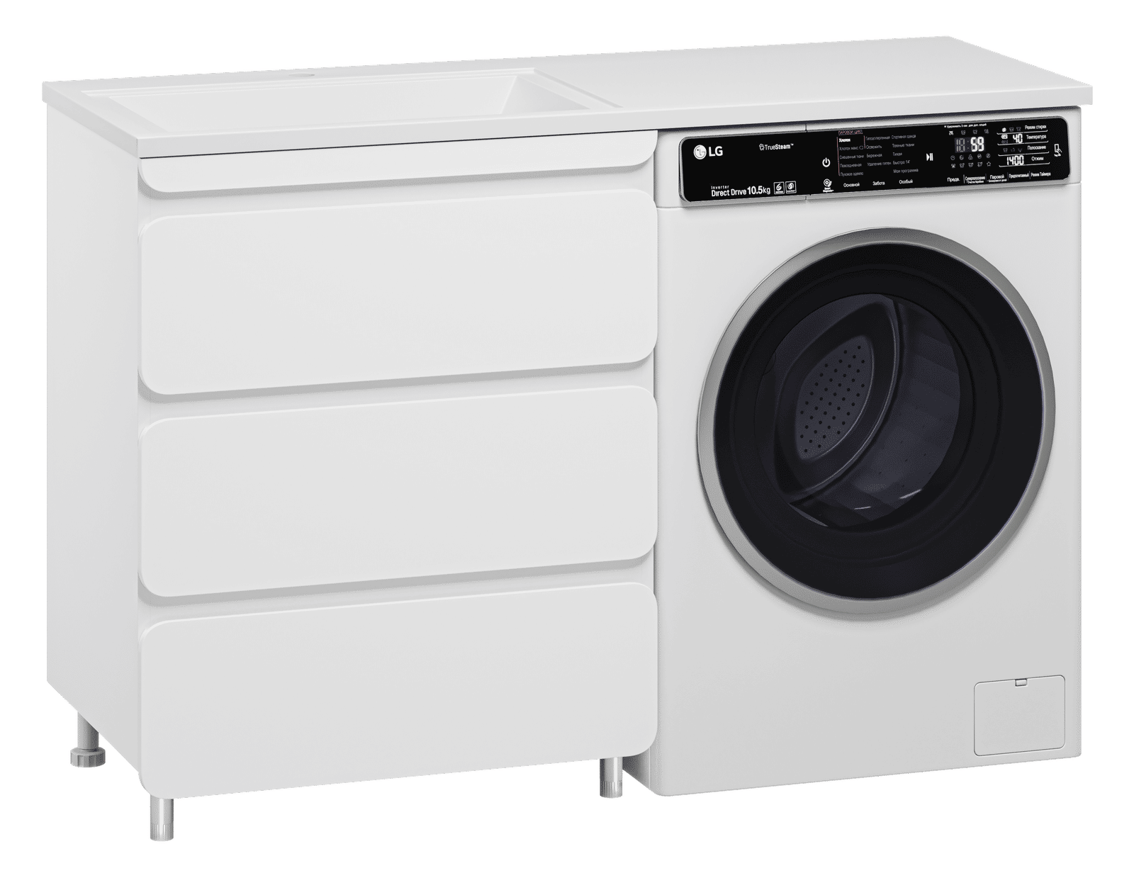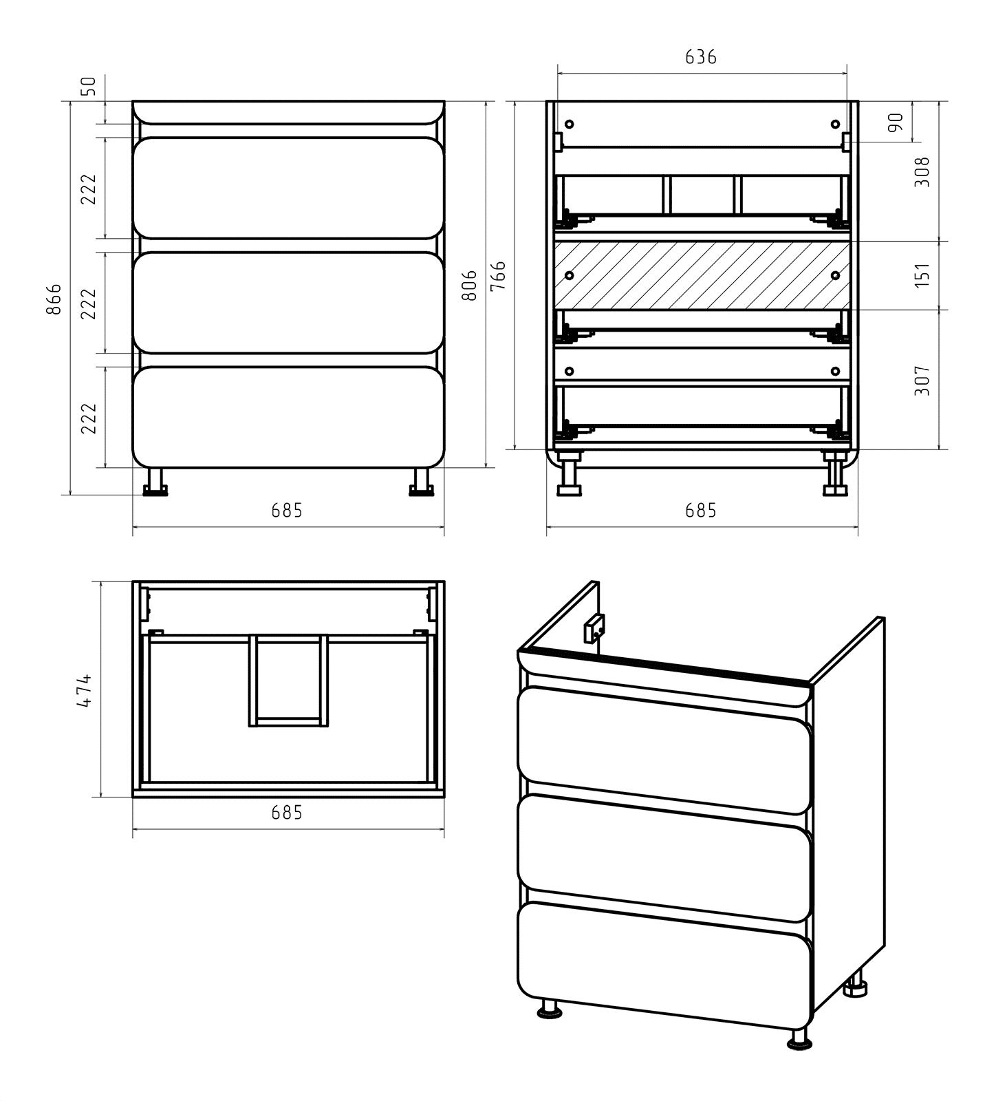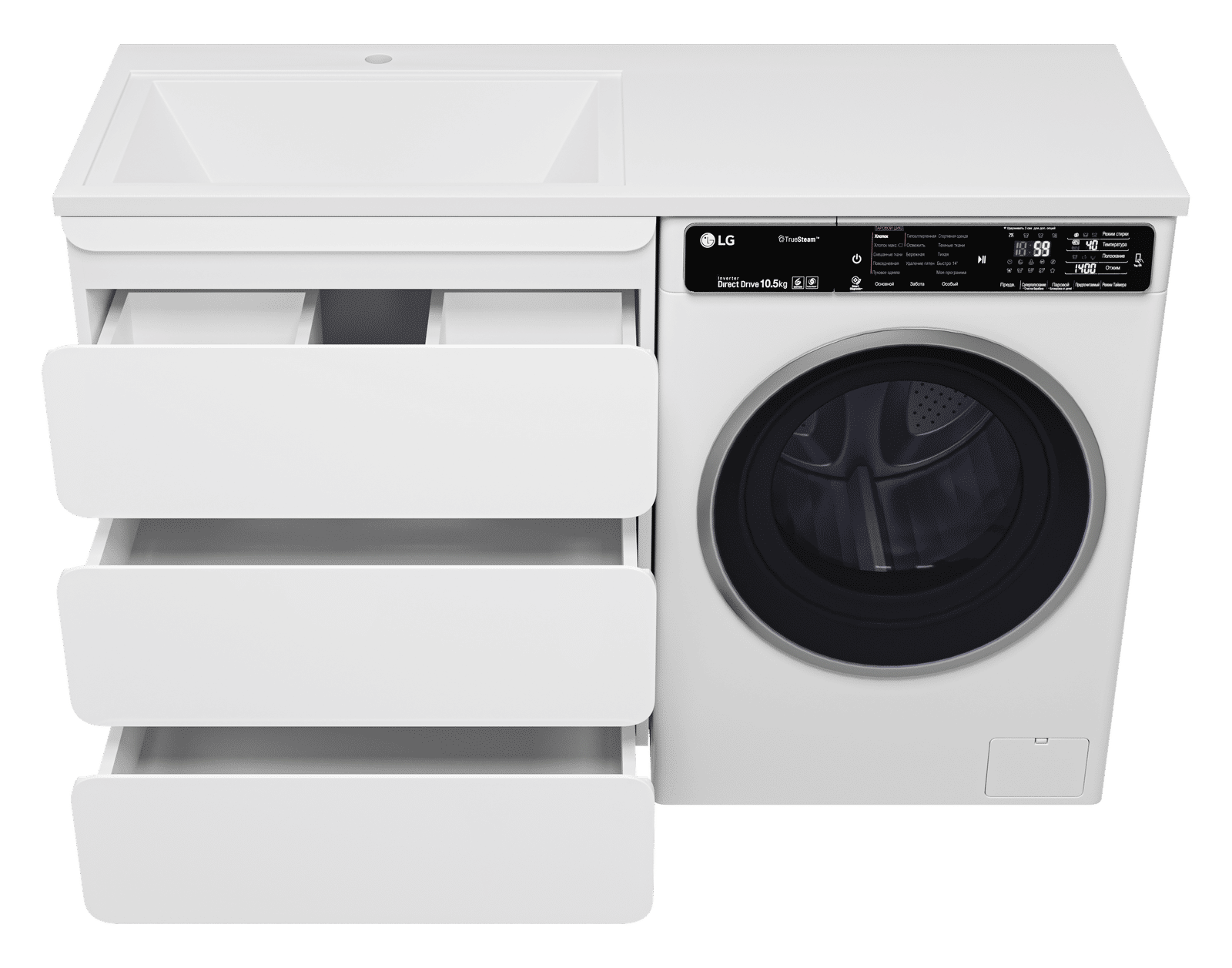 Выдвижные ящики оснащены направляющими со скрытыми доводчиками, которые обеспечивают плавное выдвижение и бесшумную работу механизмов.