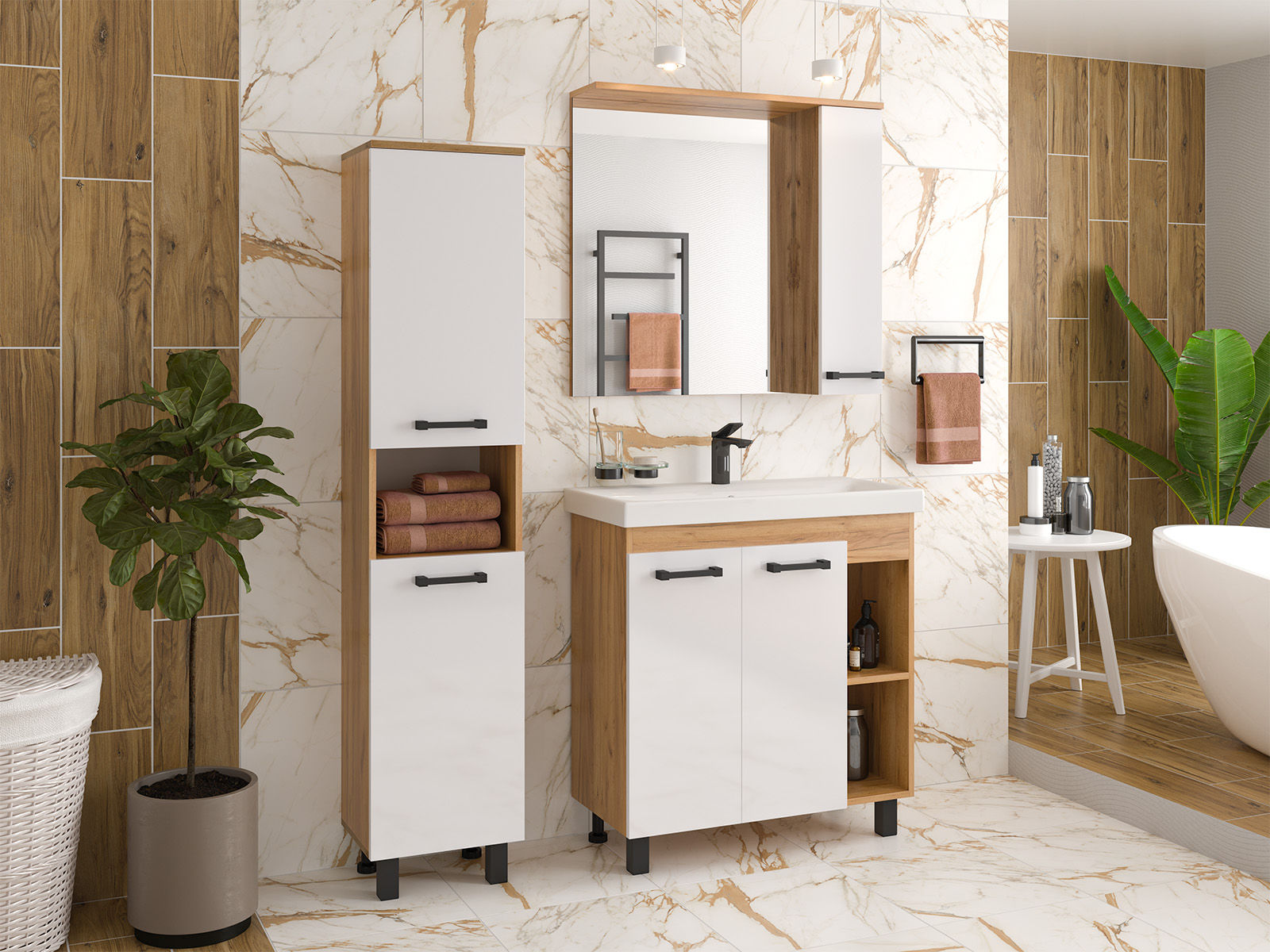 Крафт — коллекция мебели, разработанная специально для поклонников оригинальных и стильных интерьеров ванных комнат. В качестве основной цветовой гаммы используется комбинация белого глянца и светло-коричневых «древесных» тонов. Именно такое сочетание является одним из модных трендов в мебельной сфере. Мебель в ванную из коллекции Крафт гармонично впишется практически в любой классический или современный интерьер.