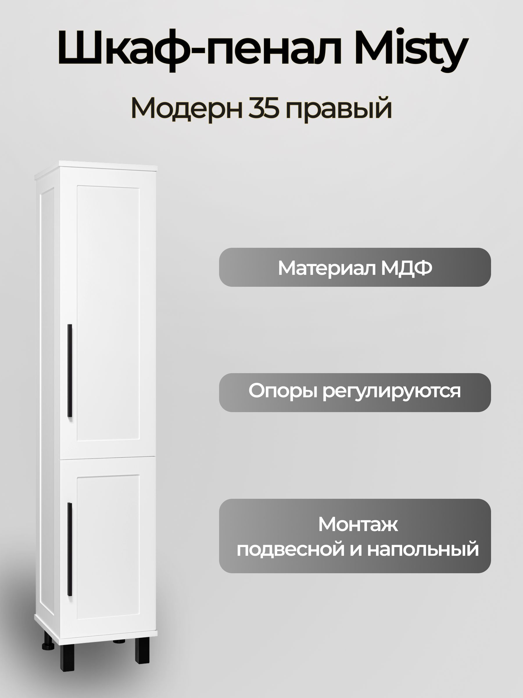 Шкаф-пенал для ванной Misty Модерн 35 с Б/К универсальный, правый / П-Мод05035-011П белая матовая эмаль