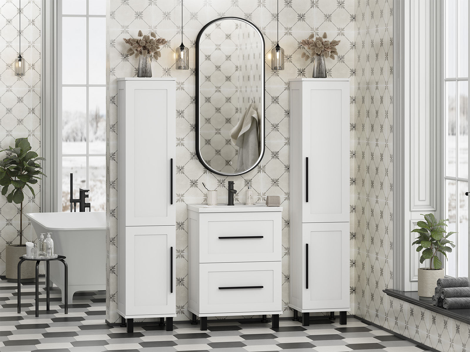 Вы можете установить шкаф как напольным, так и подвесным способом, что дает вам возможность адаптировать его под особенности вашей ванной комнаты. Фасад и каркас выполнены из качественного МДФ с эмалевым покрытием, что гарантирует долговечность и легкость в уходе.