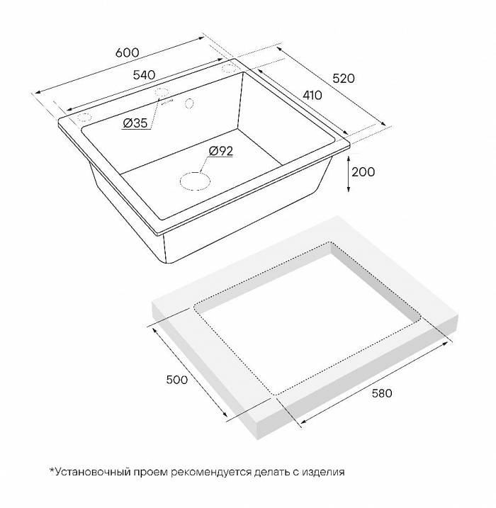 Кухонная мойка из искусственного камня Paulmark Kante 60 из искусственного гранита PM106052-BLM черный металлик 600х520 мм