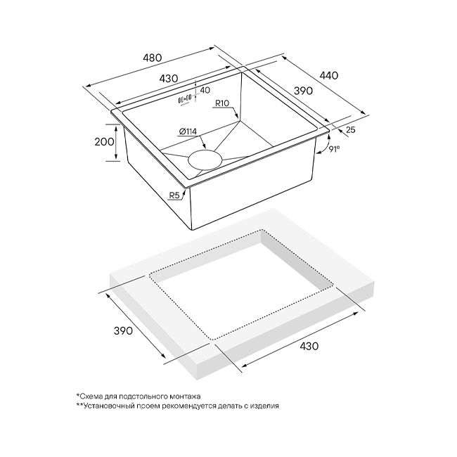 | Монтаж | Интегрированный, Встраиваемый снизу, Встраиваемый сверху |