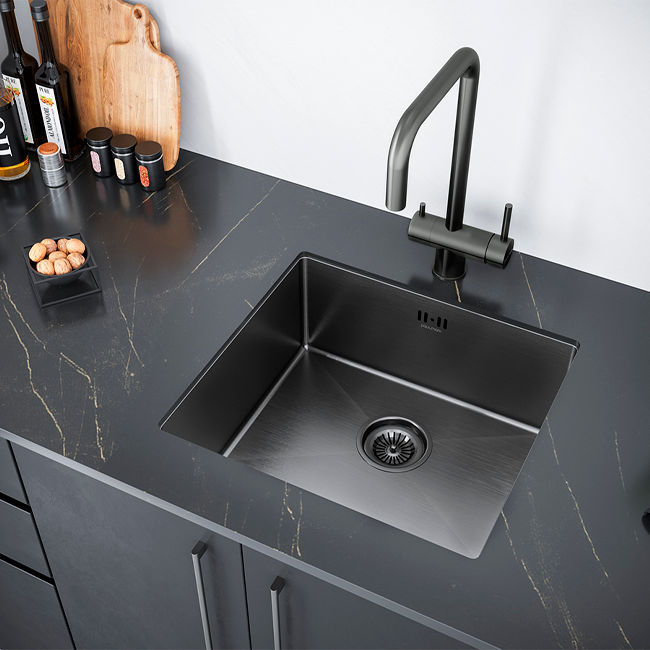 Кухонная мойка из нержавеющей стали Paulmark Marx PM214844-GM вороненая сталь 480х440 мм