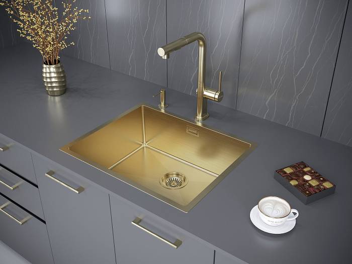 Кухонная мойка из нержавеющей стали Paulmark Next 54 Uni PM215444-BG брашированное золото 540х440 мм