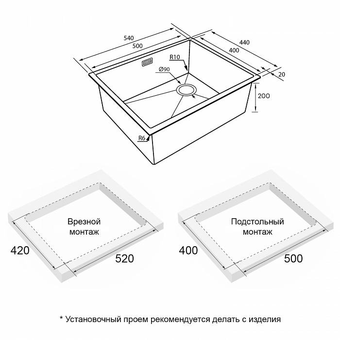 | Монтаж | Интегрированный, Встраиваемый снизу, Встраиваемый сверху |