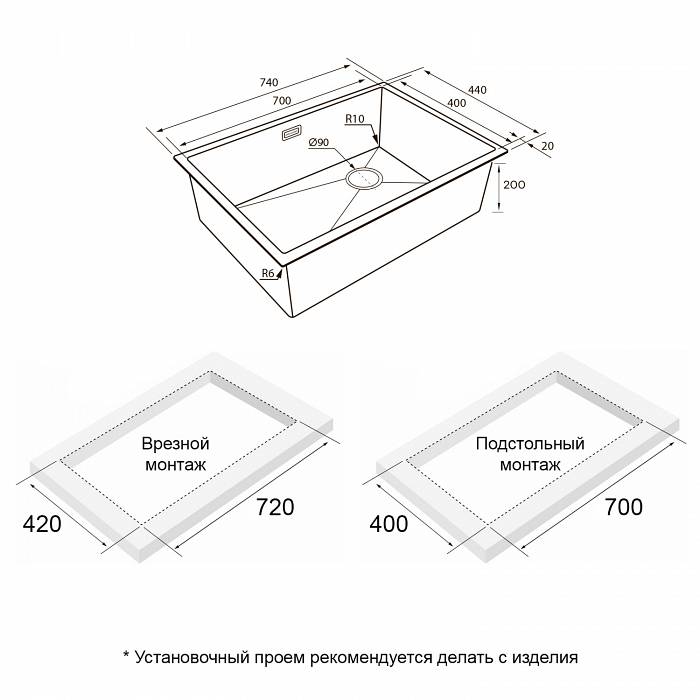 | Монтаж | Интегрированный, Встраиваемый снизу, Встраиваемый сверху |