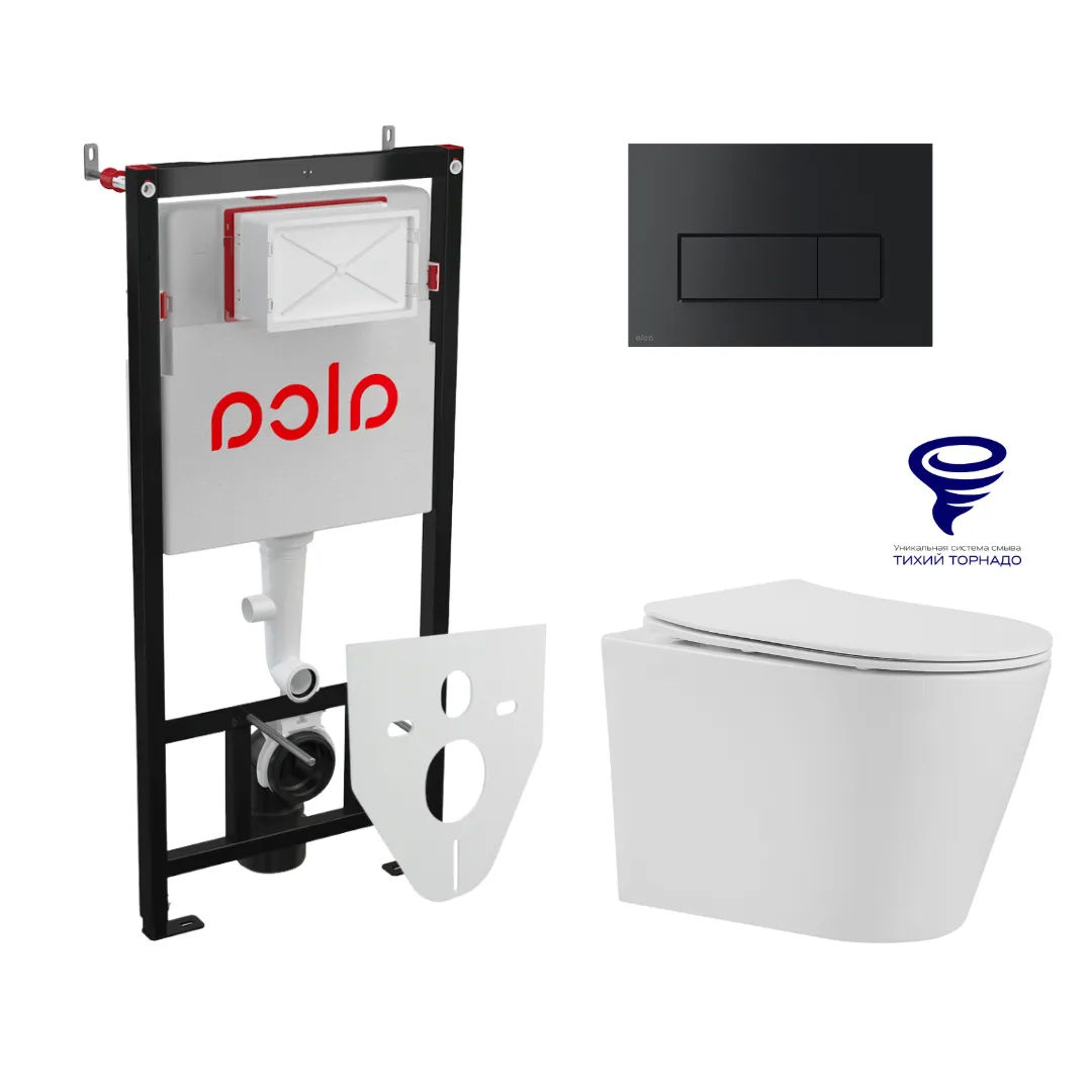Унитаз подвесной с инсталляцией AlcaDrain (AlcaPlast) Prato Рим (торнадо) с инсталляцией AlcaPlast (AM101/1120+M578+M91) 5 в 1 черный матовый