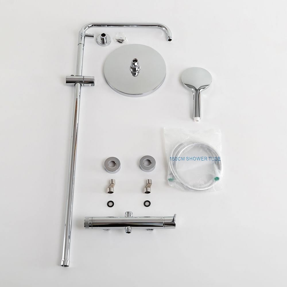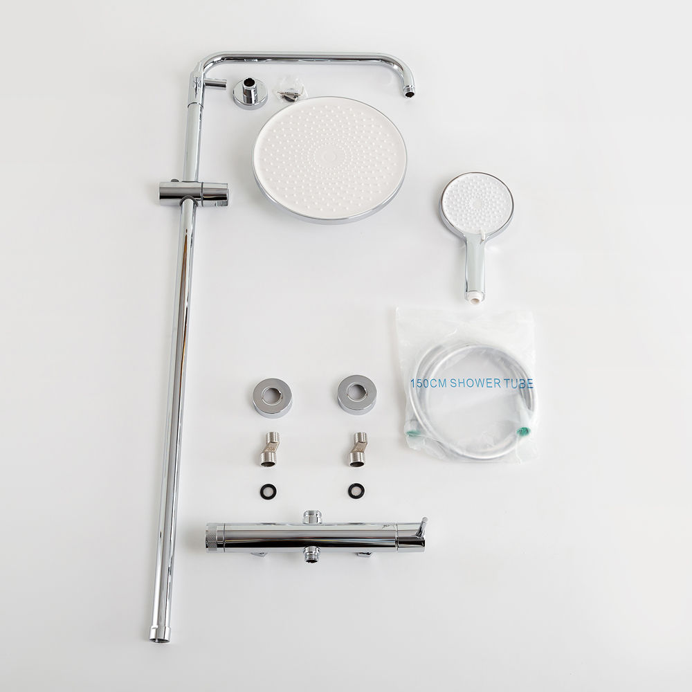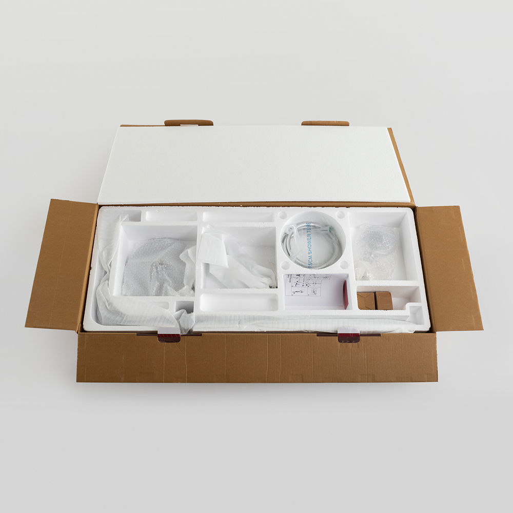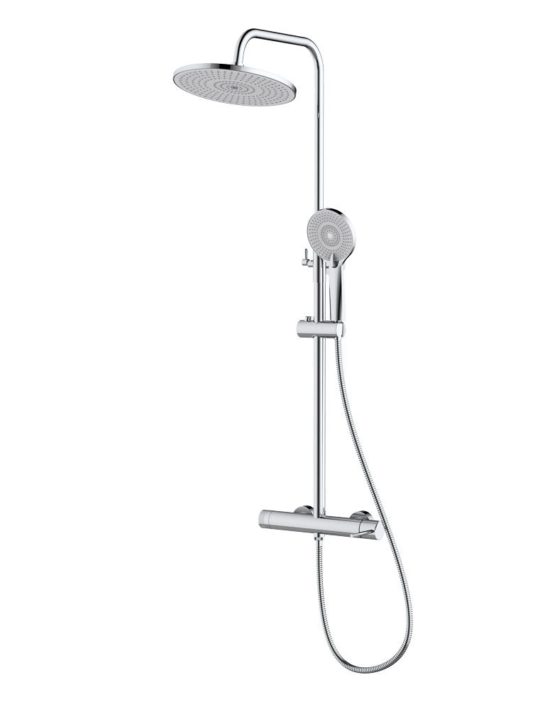 Система поставляется с полным комплектом для мгновенного наслаждения. Вас ждет просторный верхний душ размером 230х230 мм, который подарит ощущение освежающего тропического ливня. Его положение можно регулировать по высоте до 32 см, чтобы создать идеальный поток для любого члена семьи. Трехрежимная ручная лейка из прочного ABS-пластика предлагает на выбор различные варианты массажа, а эргономичный поворотный держатель и гибкий шланг длиной 150 см обеспечивают невероятную свободу движений.