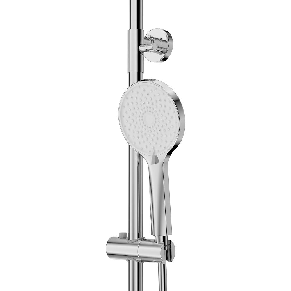 Система дополнена полноценным спа-комплексом: просторный верхний душ 230х230 мм с регулировкой высоты до 32 см создает эффект освежающего тропического ливня, а трехрежимная ручная лейка предлагает различные варианты массажа. Гибкий шланг длиной 150 см и эргономичный поворотный держатель обеспечивают неограниченную свободу движений.