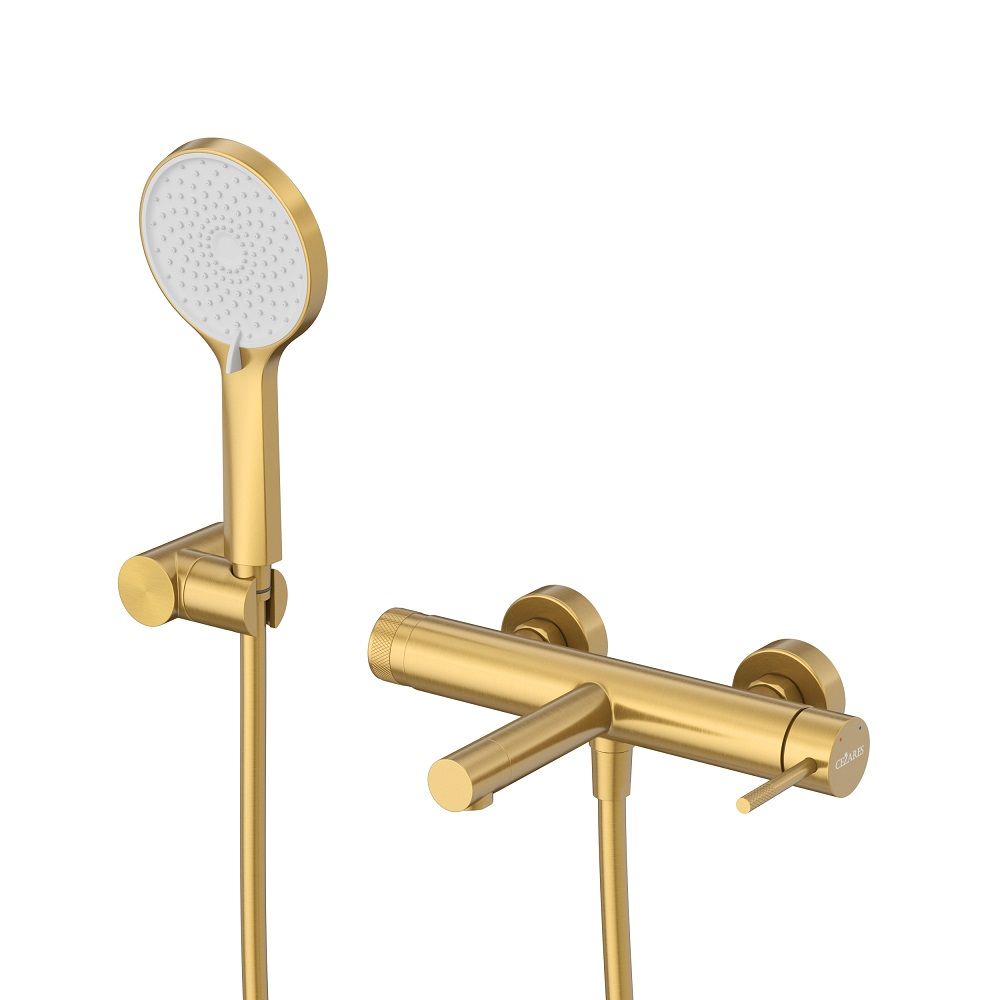 Смеситель для ванны Cezares RELAX-VD-BORO однорычажный в комплекте с ручным душем, шлангом и держателем (брашированное золото)