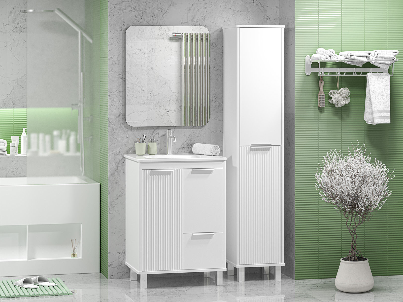 Тумба под раковину Brevita Risacca white 60 напольная 2 дв. 1 ящ. / RIS-06060-0142Я белая матовая эмаль