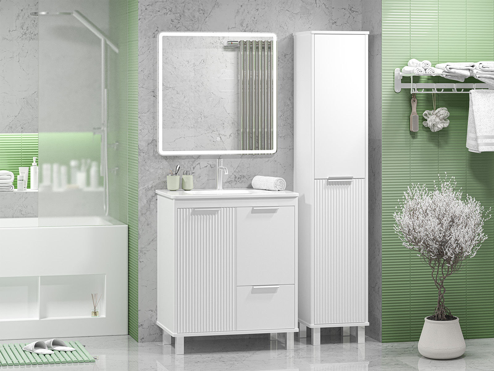 Тумба под раковину Brevita Risacca white 70 напольная 2 дв. 1 ящ. / RIS-06070-0142Я белая матовая эмаль