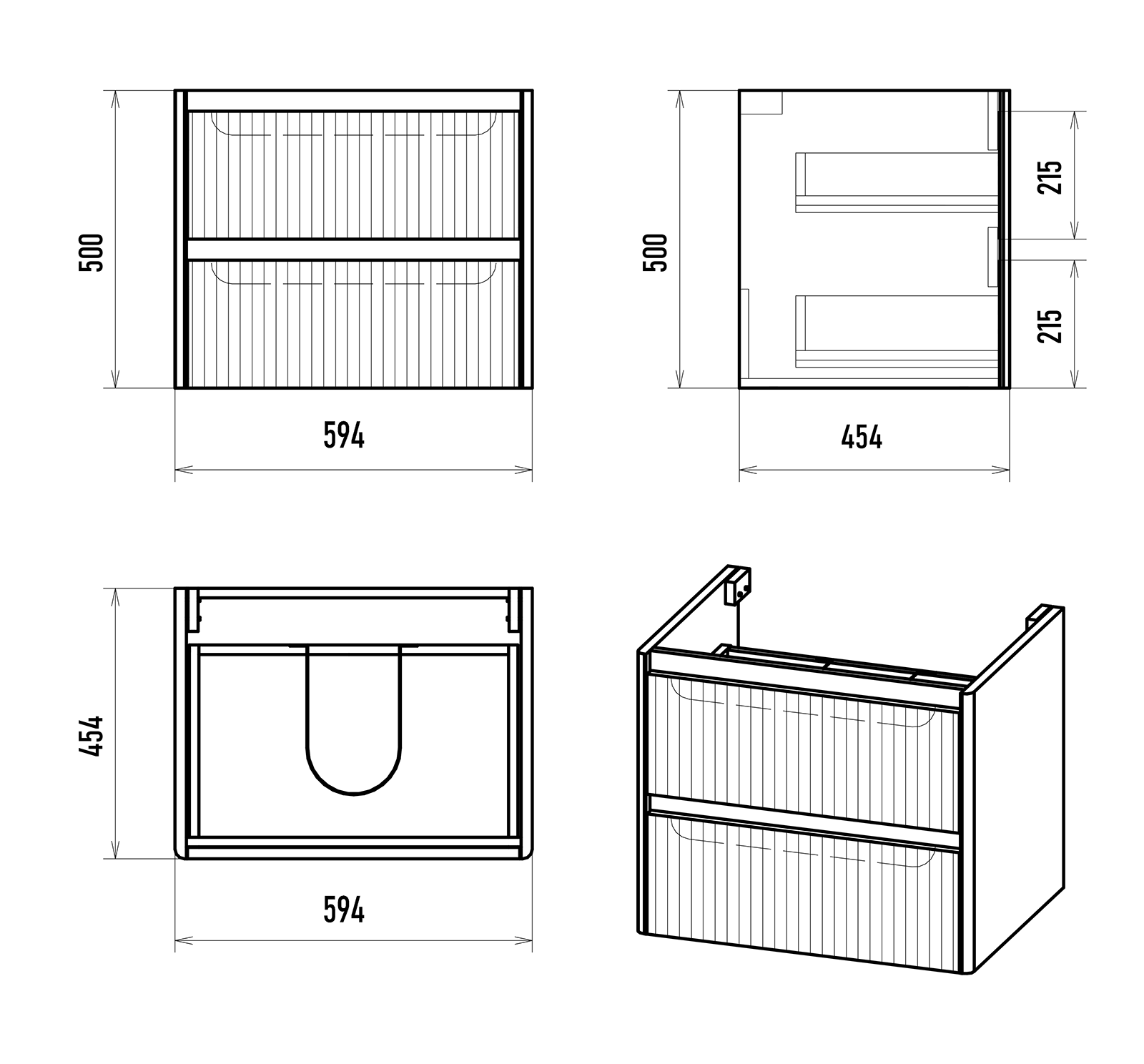 Тумба под раковину Brevita Riva 60 подвесная с 2 ящ. / RIV-07060-0102Я белый