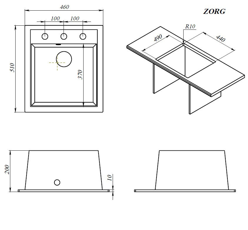 Установка мойки осуществляется врезным способом на столешницу, что обеспечивает аккуратный и гармоничный внешний вид. Круглый перелив добавляет функциональности и предотвращает переполнение, обеспечивая вам дополнительное спокойствие во время готовки.