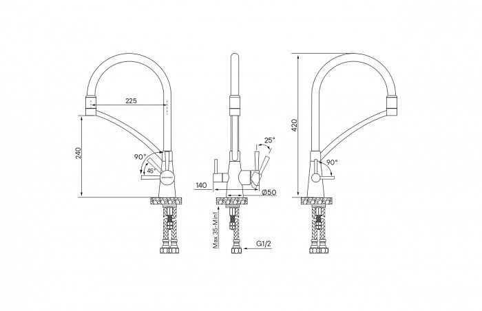 | Стандарт подводки | 1/2" |