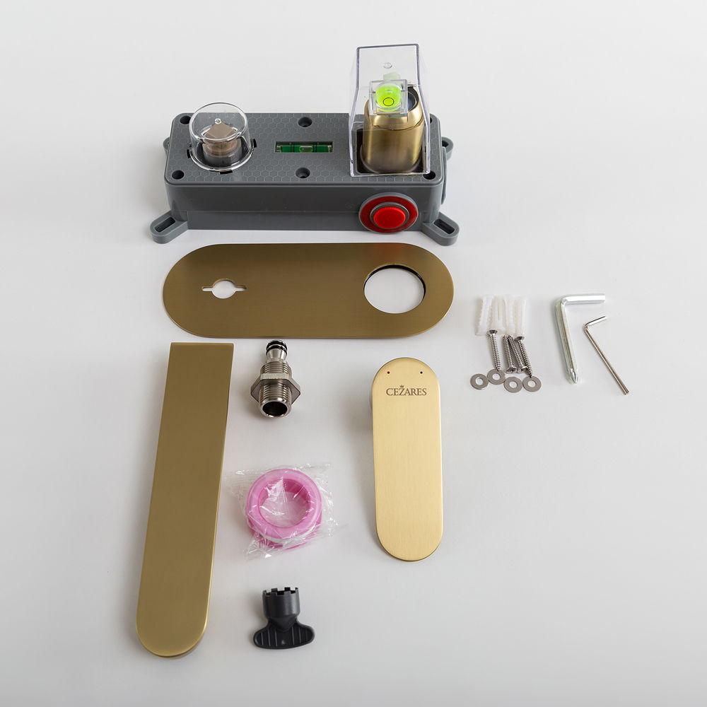 Смеситель скрытого монтажа для раковины Cezares STYLUS-BLI1-BORO-W0 с внутренней частью без донного клапана (брашированное золото)